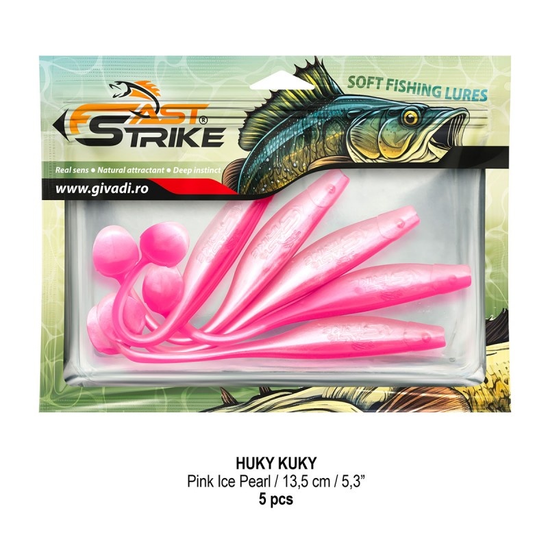 Shad Fast Strike Huky Kuky, Pink Ice Pearl, 13.5cm, 5buc/blister este o nălucă soft premium, dedicată pescuitului peștilor răpitori precum știuca, șalăul, somnul și bibanul mare , având o acțiune irezistibilă și o construcție atent gândită pentru performanță maximă. Corpul alungit, suplu și coada lungă, subțire, conferă nalucii o mișcare naturală și o vibrație amplă care atrage răpitorii chiar și în perioadele de activitate redusă. Datorită formei sale, Huky Kuky poate fi folosită cu succes atât la trena , cât și armată pe jig , evoluând stabil și provocator în toate straturile de apă — de la suprafață la adâncime. Realizată din material siliconic premium , moale dar rezistent, naluca își păstrează proprietățile inițiale chiar și după multiple atacuri. Este impregnată cu un miros atractiv de peștișor pradă, menit să prelungească timpul de interes al răpitorului. Ambalată în blister rigid cu tavă de protecție și plic resigilabil cu fermoar , Huky Kuky 13.5cm își păstrează forma perfectă și calitatea materialului în timp, fiind o alegere de încredere pentru pescarii exigenți. Caracteristici: ? Tip nălucă: shad soft alungit ? Specii vizate: știucă, șalău, somn, biban mare ⚙️ Material: silicon premium, moale și durabil ? Coada: lungă și flexibilă, vibrație amplă și realistă ? Aromă: peștișor pradă, impregnată din fabrică Monturi compatibile: jig, trena, offset ? Culoare: Pink Ice Pearl ? Lungime: 13.5 cm ⚖️ Greutate: 8.4 g ? Ambalaj: blister cu tavă rigidă și plic resigilabil, 5 bucăți