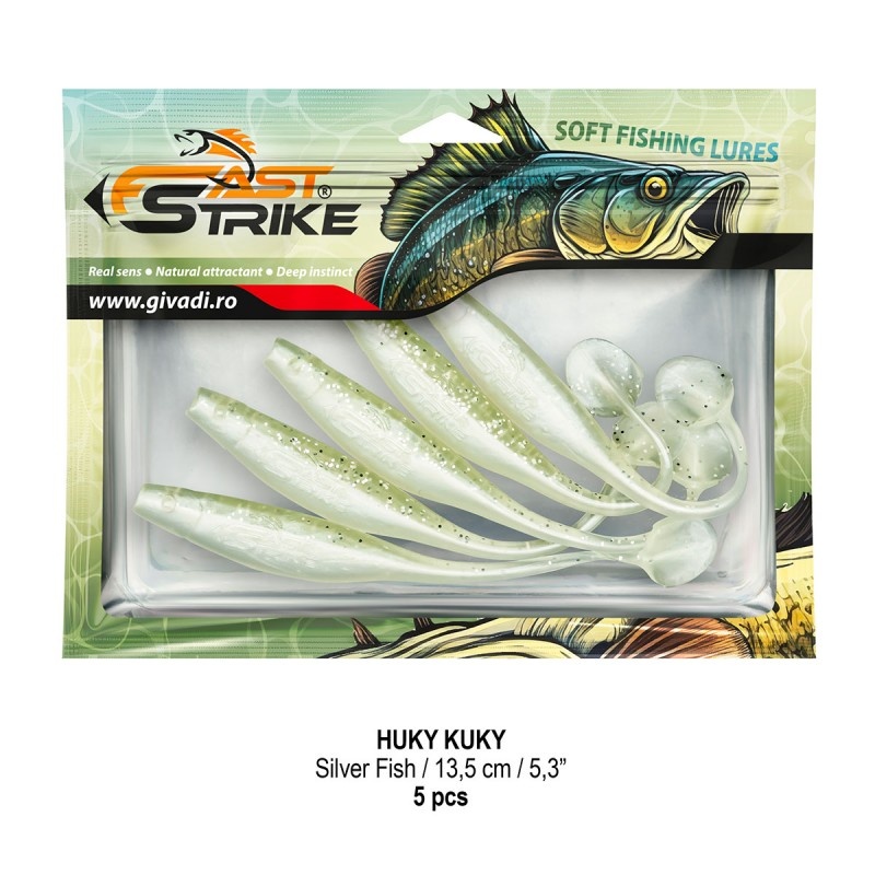 Shad Fast Strike Huky Kuky, Silver Fish, 13.5cm, 5buc/blister este o nălucă soft premium, dedicată pescuitului peștilor răpitori precum știuca, șalăul, somnul și bibanul mare , având o acțiune irezistibilă și o construcție atent gândită pentru performanță maximă. Corpul alungit, suplu și coada lungă, subțire, conferă nalucii o mișcare naturală și o vibrație amplă care atrage răpitorii chiar și în perioadele de activitate redusă. Datorită formei sale, Huky Kuky poate fi folosită cu succes atât la trena , cât și armată pe jig , evoluând stabil și provocator în toate straturile de apă — de la suprafață la adâncime. Realizată din material siliconic premium , moale dar rezistent, naluca își păstrează proprietățile inițiale chiar și după multiple atacuri. Este impregnată cu un miros atractiv de peștișor pradă, menit să prelungească timpul de interes al răpitorului. Ambalată în blister rigid cu tavă de protecție și plic resigilabil cu fermoar , Huky Kuky 13.5cm își păstrează forma perfectă și calitatea materialului în timp, fiind o alegere de încredere pentru pescarii exigenți. Caracteristici: ? Tip nălucă: shad soft alungit ? Specii vizate: știucă, șalău, somn, biban mare ⚙️ Material: silicon premium, moale și durabil ? Coada: lungă și flexibilă, vibrație amplă și realistă ? Aromă: peștișor pradă, impregnată din fabrică Monturi compatibile: jig, trena, offset ? Culoare: Silver Fish ? Lungime: 13.5 cm ⚖️ Greutate: 8.4 g ? Ambalaj: blister cu tavă rigidă și plic resigilabil, 5 bucăți
