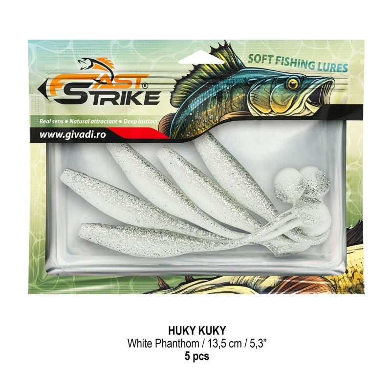Shad Fast Strike Huky Kuky, White Phanthom, 13.5cm, 5buc/blister este o nălucă soft premium, dedicată pescuitului peștilor răpitori precum știuca, șalăul, somnul și bibanul mare , având o acțiune irezistibilă și o construcție atent gândită pentru performanță maximă. Corpul alungit, suplu și coada lungă, subțire, conferă nalucii o mișcare naturală și o vibrație amplă care atrage răpitorii chiar și în perioadele de activitate redusă. Datorită formei sale, Huky Kuky poate fi folosită cu succes atât la trena , cât și armată pe jig , evoluând stabil și provocator în toate straturile de apă — de la suprafață la adâncime. Realizată din material siliconic premium , moale dar rezistent, naluca își păstrează proprietățile inițiale chiar și după multiple atacuri. Este impregnată cu un miros atractiv de peștișor pradă, menit să prelungească timpul de interes al răpitorului. Ambalată în blister rigid cu tavă de protecție și plic resigilabil cu fermoar , Huky Kuky 13.5cm își păstrează forma perfectă și calitatea materialului în timp, fiind o alegere de încredere pentru pescarii exigenți. Caracteristici: ? Tip nălucă: shad soft alungit ? Specii vizate: știucă, șalău, somn, biban mare ⚙️ Material: silicon premium, moale și durabil ? Coada: lungă și flexibilă, vibrație amplă și realistă ? Aromă: peștișor pradă, impregnată din fabrică Monturi compatibile: jig, trena, offset ? Culoare: White Phanthom ? Lungime: 13.5 cm ⚖️ Greutate: 8.4 g ? Ambalaj: blister cu tavă rigidă și plic resigilabil, 5 bucăți