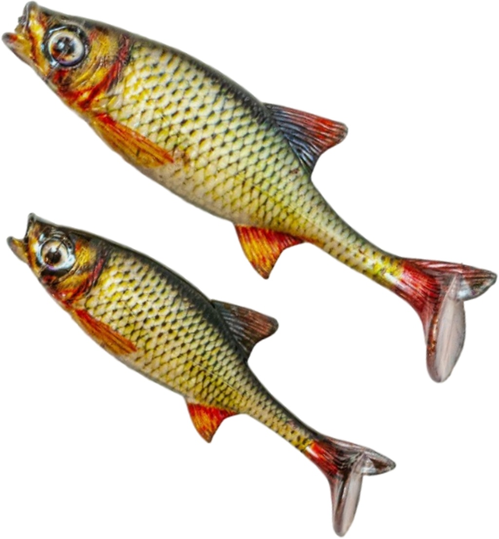 Fast Strike Roach Shad este o nălucă soft realistă , concepută pentru pescuitul la răpitori precum șalău, știucă, somn, biban sau avat . Realizată după modele computerizate, imită fidel un pește pradă natural, cu detalii extrem de realiste ce provoacă atacul chiar și al celor mai suspicioși rapitori. Corpul are o culoare naturală , cu solzi lucioși , ochi 3D , aripioare detaliate și o gură fin modelată , oferind un aspect autentic în apă. Coada special concepută produce o vibrație subtilă , ideală pentru a stimula atacurile peștilor apatici sau greu de păcălit. Poate fi utilizată pe cârlige offset, jiguri cu sau fără plumb , în funcție de adâncimea apei — de la lacuri puțin adânci din Delta Dunării până la fluvii și baraje adânci . Datorită acțiunii naturale de deplasare pe substrat, este eficientă în orice condiții. Disponibilă în două variante: 8 cm / 5 g și 10 cm / 9 g , ambalată în tipla rigidă de prezentare. Poate fi personalizată cu arome specifice pentru un plus de atractivitate. ⭐ Caracteristici: ? Tip momeală: nălucă soft realistă ? Model: Fast Strike Roach Shad RGR ? Specii vizate: șalău, știucă, somn, biban, avat ? Culoare: naturală, cu reflexii de solzi și detalii 3D ?️ Ochi 3D și formă naturală a corpului ? Coada specială – vibrație subtilă, realistă ⚙️ Compatibilă cu cârlige offset și jiguri ? Opțional: aromatizare personalizată ? Dimensiuni: 10 cm / 9 g ? Ambalare: tipla rigidă 8 buc