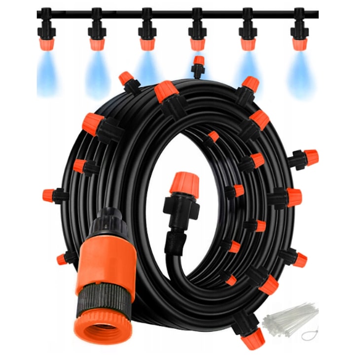 Sistem automatizat pentru Irigare 10 Metri Kit Complet irigare pentru Plante si flori naturale Picuratori Reglabili si Accesorii pentru Gradina de Vis Acest sistem de irigare automatizat este alegerea perfecta pentru mentinerea plantelor si florilor sanatoase, fara efort suplimentar. Potrivit pentru gradini, sere, terase si ghivece suspendate, sistemul asigura o distributie uniforma a apei, reducand risipa si economisind timp. Acest kit complet elimina udarea manuala si asigura un mediu ideal pentru cresterea sanatoasa a plantelor. Distributie precisa a apei: Picuratorii ofera o irigare uniforma si eficienta pentru fiecare planta. Economie de timp si resurse: Sistemul automatizat reduce consumul de apa si minimizeaza necesitatea interventiei manuale. Materiale rezistente: Furtunul este flexibil, rezistent la UV si conceput sa dureze in timp. Instalare simpla: Kitul include tot ce ai nevoie Furtun de 10M, adaptor rapid, conectori Tee Picuratori si suporturi fixe, eliminand necesitatea altor unelte. Perfect pentru orice tip de gradina, de la flori si legume la plante suspendate si zone greu accesibile. Acest sistem iti ofera control complet asupra procesului de irigare, astfel incat fiecare planta primeste cantitatea exacta de apa necesara pentru o dezvoltare optima.
