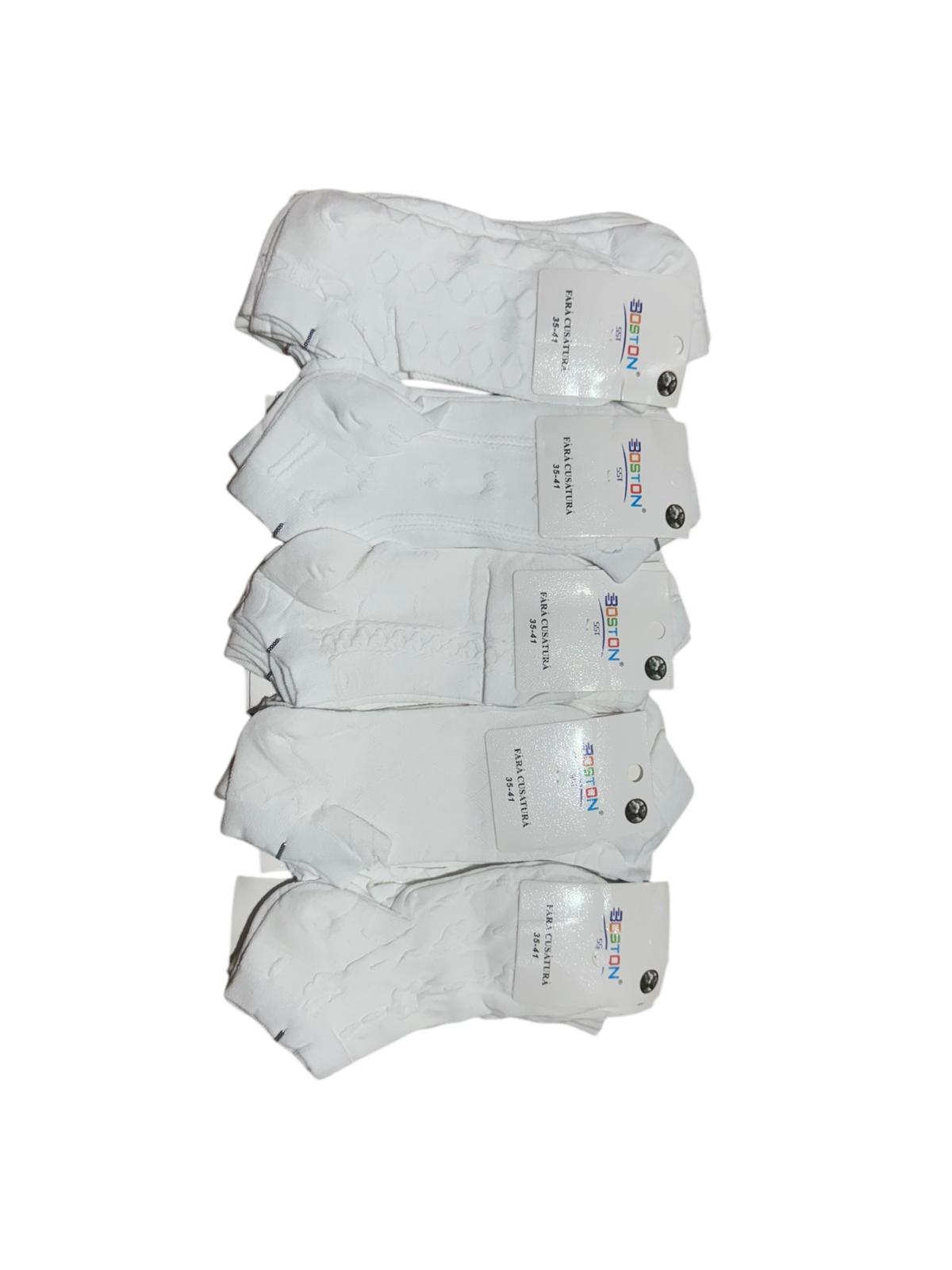 Sosete dama Marimi: 35-41 Compozitie: 80% bumbac; 18% poliester; 2% spandex Instructiuni de ingrijire: - se spala la masina la 30 grade Celsius- se spala si se usuca pe dos- nu inmuiati- spalati separat culorile inchise- nu folositi inalbitor- uscati fara incalzire