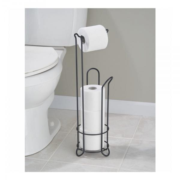 Suport metalic pentru hartia igienica, Negru Suportul pentru hartie igienica reprezinta un accesoriu de baie indispensabil, practic si modern. Acesta este realizat din otel, cu finisaj cromat, conferind un aspect atractiv si elegant. Este recomandat pentru depozitarea rezervelor de hartie igienica. Datorita finisajului cromat, acesta se integreaza cu usurinta in orice design existent al spatiului sanitar. Suportul nu este prevazut cu clapeta, astfel accesul la hartia igienica realizandu-se mai usor. Pentru un plus de organizare in baia dumneavoastra, aveti posibilitatea de a depozita pana la trei rezerve. Lungime: 16.51 cm Latime: 16.51 cm Inaltime: 60.96 cm Greutate: 1.0569 kg