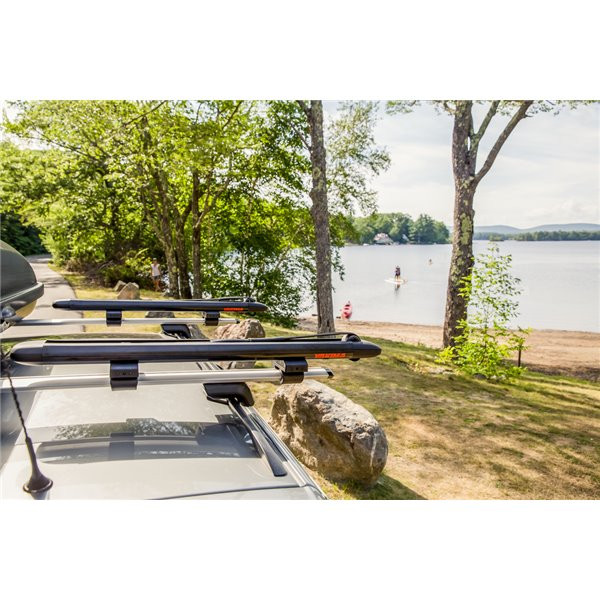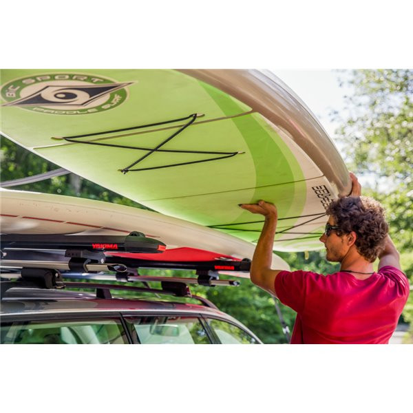 Suport portbagaj pentru transport 2 placi SUP, Yakima SupDawg Include tot ce este necesar pentru a putea transporta pana la 2 placi de stand up paddle Gata asamblat si usor de montat Instalarea nu necesita ustensile Ajustabile pentru placi de o latime de pana la 36” Captusite pentru a proteja placile Greutate: 6kg Dimensiuni: L 40.00 in x W 6.00 in x H 6.00 in