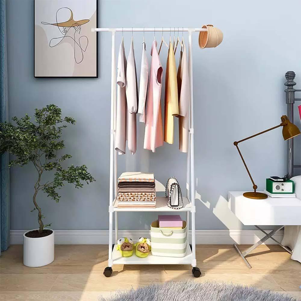 Suport triunghi pentru haine si umerase cu 2 rafturi Foarte practic si durabil - Organizatorul pentru haine, are un aspect placut, venind cu un plus de design in orice locuinta, birou, camera. Este realizat din otel inoxidabil vopsit mat, anticoroziv. Linii curbe si putine imbinari, fac din acest organizator o piesa deosebita in locuinta dumneavoastra. Design elegant - cu un design modern, elegant si extrem de functional, cuierul este o piesa usor de integrat in orice locuinta sau birouri. Are o tija suspendata si doua rafturi in partea inferioara ideale pentru accesorii si incaltaminte. Suport triunghi pentru haine si umerase cu 2 rafturi. Caracteristici generale: Material: metal/plastic Usor de asamblat si manevrat Culoare si design minimalist Durabil Rafturi spatioase si spatiu pentru agatat Usor de instalat Dimensiune 160 x 55 x 42 cm Tija umerase: lungime: 107 cm Culori disponibile: Alb si Negru Sarcina maxima: pana la 50 kg Timp de instalare: 10 minute Suport pentru haine sau umerase cu 2 rafturi inferioare. Elegant si, in acelasi timp, robust, suportul este o combinatie unica de estetica si durabilitate. Ea atrage atentia prin constructia solida si un design original. Modelul a fost fabricat din materiale de cea mai buna calitate. Cuierul este perfect pt fiecare casa si birou.