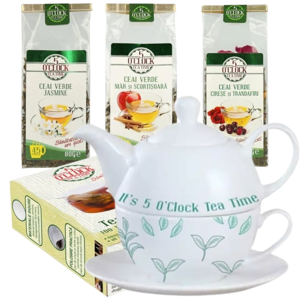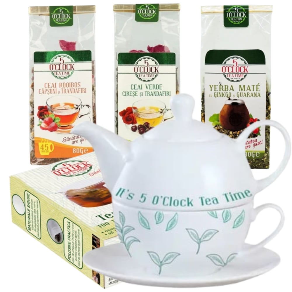 Setul de ceai Tea for One este un exemplu perfect de simplitate si eleganta. Acesta include un ceainic cu capacitatea de 0.4 litri si o cana de 0.25 litri, realizate din portelan de inalta calitate, care pastreaza bautura la temperatura ideala. Designul curat si alb este intotdeauna la moda, iar dimensiunile sunt ideale pentru o pauza relaxanta de ceai, fie ca este acasa sau la birou.