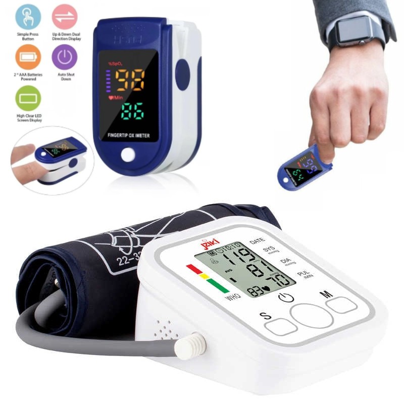 Tensiometru electronic de brat + Pulsoximetru Tensiometru electronic de brat cu alimentare USB sau baterii - 99 memorari asezati-va cotul pe birou mansonul si inima trebuie sa fie la acelasi nivel tineti palma cu fata in sus si relaxati-va Monitorul tensiometrului poate stoca 99 de grupuri de memorare pentru 2 persoane. Dupa fiecare masurare a tensiunii, monitorul va salva automat datele respective. Cand capacitatea de memorare a aparatului a atins limita maxima, datele vechi vor fi inlocuite cu cele noi. numar de memorii: 99 de spatii de memorare display digital LCD metoda de masurare oscilometrica rata de masurare presiune: 40 mmHg-280 mmHg; puls: 40-199 / minute acuratete: presiune statica ± 3mmHg ; puls ± 5% alimentare prin port mini USB DC 5V sau 4 baterii AAA diamtru manson 22-32 cm dimensiuni: 115 mm x 96 mm x 59 mm Aparat de masurare puls - Oximetru un singur buton de operare (on/off) dimensiuni mici, greutate mica, usor de carat si depozitat consum mic functioneaza cu 2 baterii AA (neincluse) indicator pentru baterie slaba oprire automata atunci cand nu e utilizat deloc timp de 8 secunde display masurare cu ajutorul degetului curent masurare: mazim 30mA temperatura de lucru: 5-40 grade Celsius limite masurare oximetru: 35-100% limite masurare puls: 30-250 BPM pulsul este masurat in BPM oximetru masoara in % Aparatul are doua functii: BPM - masoara bataile pe minut ale inimii SpO2 - masoara saturatia de oxigen