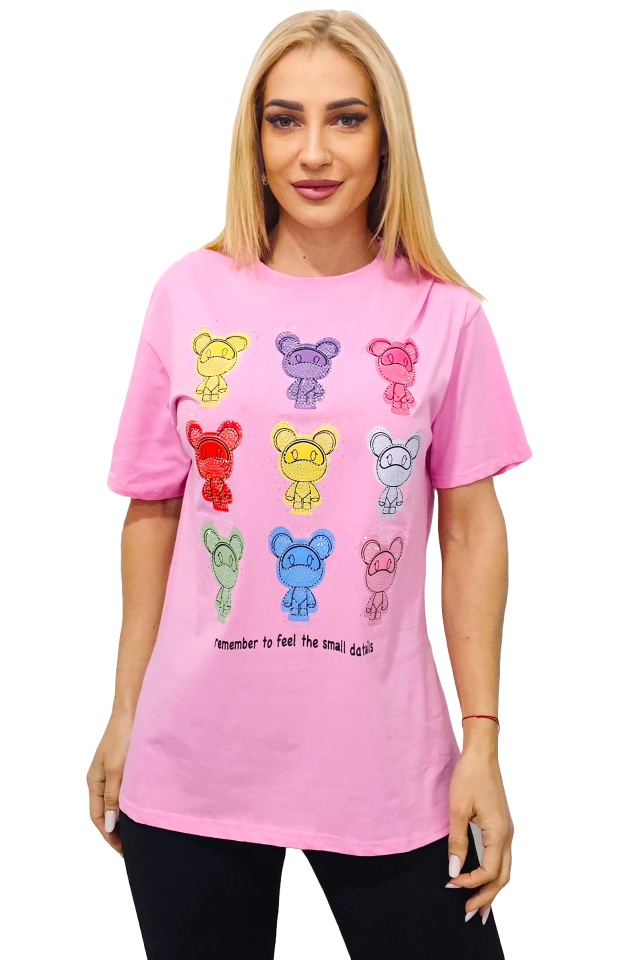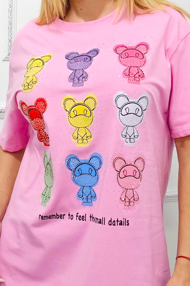 Tricoul AMOO „Rainbow Bears” este piesa care aduce culoare, veselie și un strop de nebunie cool în garderoba ta. Pe fondul roz curat, imprimeul multicolor cu ursuleți devine un statement vizual, jucăuș și neconvențional, dar cu o doză subtilă de nostalgie. Cristalele artizanale aplicate adaugă o textură strălucitoare și transformă acest tricou dintr-o piesă casual într-un element de impact vizual. Materialul din bumbac de calitate îți oferă o senzație plăcută la purtare, fiind lejer și respirabil, ideal pentru zilele agitate sau relaxate. Croiala clasică, cu guler rotund, oferă versatilitate maximă: îl poți purta cu jeanși, fuste din denim sau pantaloni scurți, în funcție de vibe-ul tău din ziua respectivă. Tricoul Rainbow Bears e pentru femeia care nu se ia prea în serios, dar știe exact ce vrea să transmită prin stilul său. E o combinație între copilărie și libertate, între playful și statement, între alb pur și explozie de culoare . Cu fiecare ursuleț care zâmbește din imprimeu, tu transmiți încredere și energie. Este o piesă care nu doar se vede, ci se simte – ca o doză de good vibes purtabile. Accepta provocarea si fa-ti outfit-ul din colectiile fashion! Ce optiuni ai bifat? Asteptam poza si un review ce te recompenseaza! Fiecare detaliu artizanal spune „nu sunt doar un tricou roz” – iar fiecare purtare confirmă asta. Marimea universala S/M compatibila cu masurile S sau M! Marimea universala L/XL compatibila cu masurile L sau XL! Compozitie material: 95% BUMBAC, 5% elastan; ? Too cute to be basic – Rainbow Bears e pentru cele care strălucesc altfel Eticheta produsului conține informații esențiale referitoare la întreținerea și spălarea corectă a articolelor vestimentare. Imaginile Fashionforyou au caracter informativ, iar nuanta, tonul si intensitatea culorii pot varia in functie de monitor/ecran telefon.