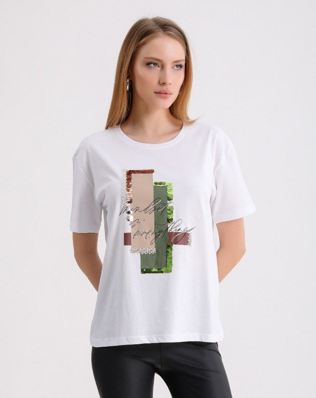 Tricou cu imprimeu, paiete si perlute, en-gross