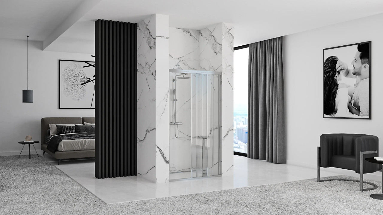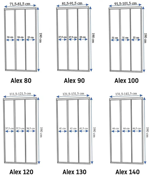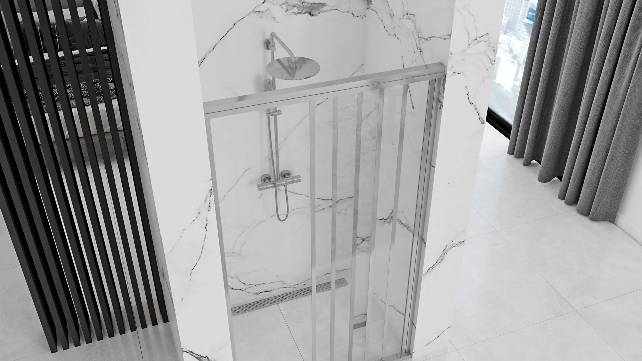 Ușa de duș Alex este cea mai bună combinație între estetica băii și confortul îmbăierii. Sunt fabricate din sticlă călită de cea mai bună calitate și au un strat modern EasyClean. Ușa Alex este formată dintr-un element fix și două elemente glisante. În cele din urmă, direcția ușii este spre dreapta. Pentru a schimba direcția ușii spre partea stângă, în elementul extrem de mobil, cu o bandă proeminentă sub formă de mâner, deșurubați profilele verticale și mutați-le pe cealaltă parte a geamului.