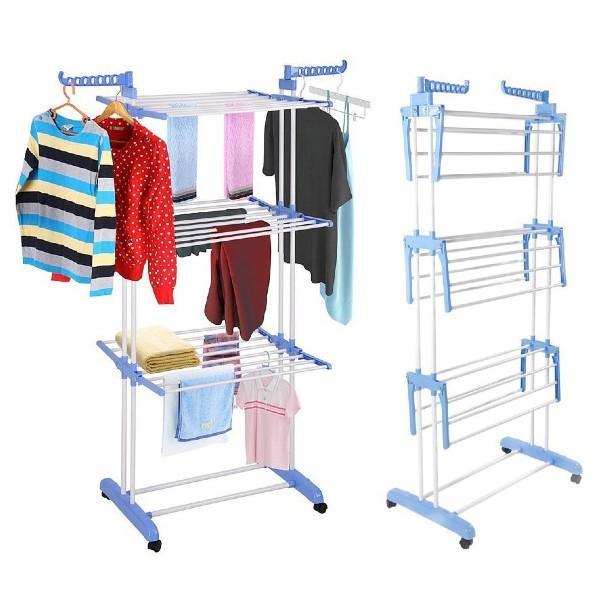 Uscator rufe vertical, pliabil, 3 niveluri, sustinere 40 kg 6 rame suspendate - 3 pe fiecare parte a suportului 4 sine pe fiecare cadru pentru uscarea multor haine simultan dimensiune: 73 x 63 x 170 cm material: otel acoperit cu pulbere, plastic Un uscator de rufe de inalta calitate este un produs care indispensabil in fiecare casa. Cu aceasta, puteti usca cu usurinta rufele in casa sau pe balcon. Numarul mare de rafturi poate gazdui pana la 35 de metri de rufe si rotile permit manevrarea usoara. Ansamblul este realizat din materiale solide care asigura o durata de viata indelungata. Rame suspendate pliabile diferite combinatii, de exemplu – pliati cadrul din mijloc daca trebuie sa uscati un cearsaf pe rama de sus, deoarece necesita mai mult spatiu pentru agatat, 2 atasamente din plastic cu gauri, folositi-le pentru a atarna umerase cu camasi, pantaloni si multe altele. Produsul este fiabil prin partea tava pliabila; se poate asambla si dezasambla raftul fara a-l deteriora. Baza rezistenta din polipropilena cu roata. Teava fabricata din otel inoxidabil rezistenta la rugina.