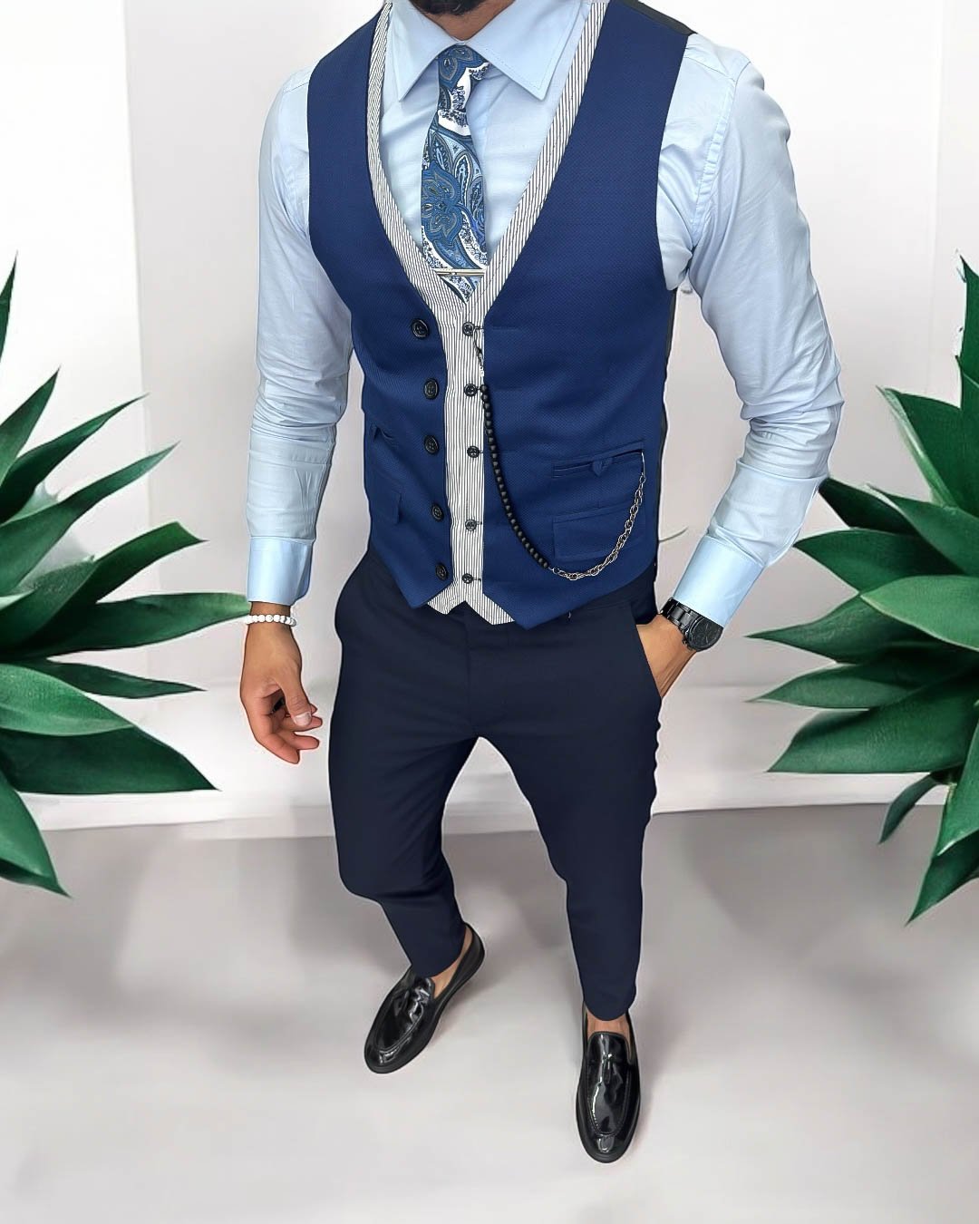 Vesta barbati eleganta slim fit, bleumarin, 13222