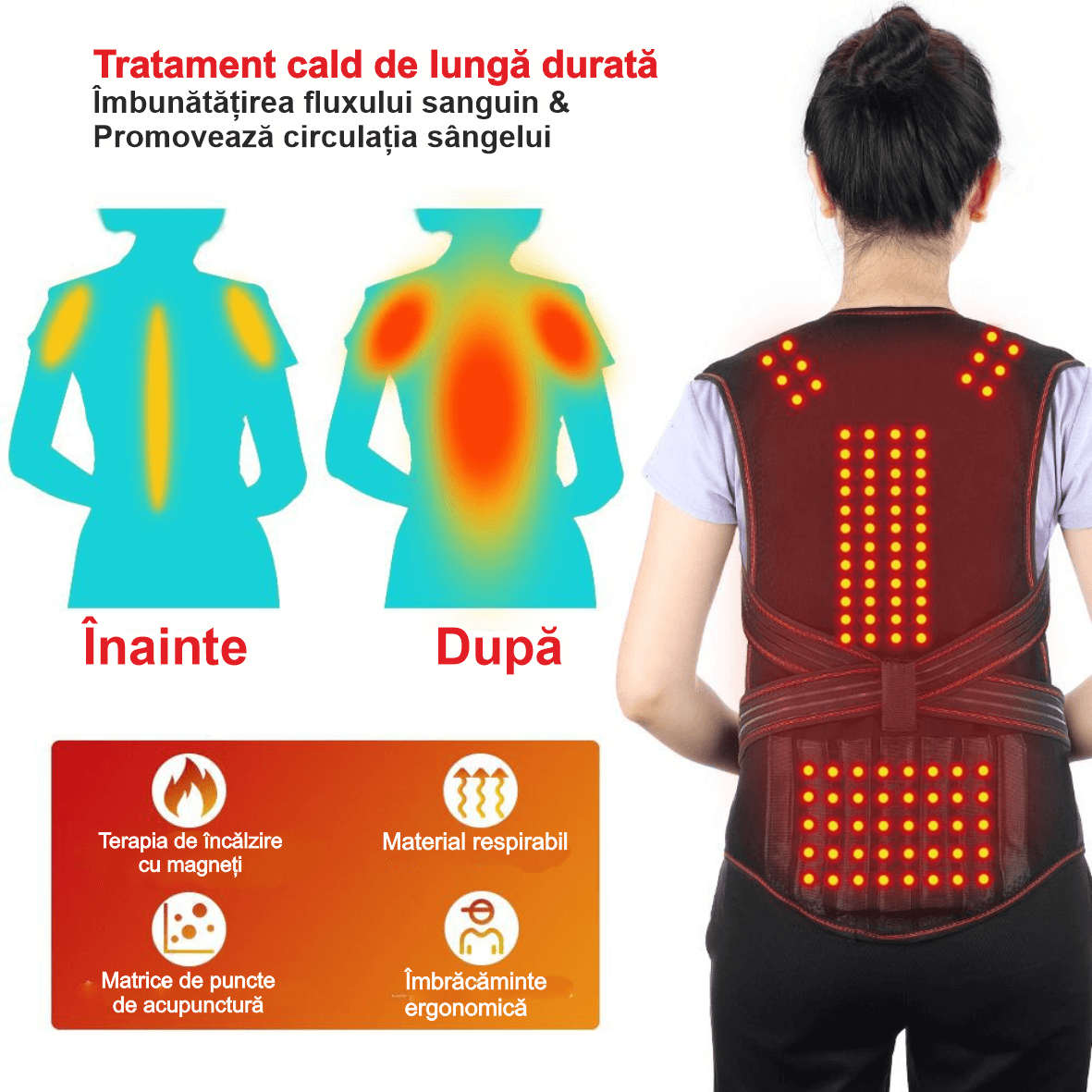 /nCaracteristici principale/nTrebuie sa fie folosit aproape de corp, timpul de incalzire este de aproximativ 40 de minute, iar temperatura generata este mai mare decat temperatura normala a corpului uman;/n1. Compresa calda pe umar si gat, autoincalzire, 118 magneti pentru intretinere, efect dublu;/n2. Fizioterapie termica, o noua generatie de matrice de autoincalzire;/n3. Incalzeste cea mai mare suprafata a spatelui, efectul compresei calde fiind benefic pentru organism, prin urmare se poate ameliora in mod eficient raceala si durerea umarului, dar si a gatului;/n4. Fizioterapie cu magneti de acupunctura, 118 magneti incorporati, se potrivesc umerilor si au grija de sanatatea umerilor;/n5. Corespunde cu exactitate punctelor de acupunctura de pe umar si spate, efectul de terapie fizica este bun si amelioreaza umarul inghetat si disconfortul umarului si al spatelui;/n6. Cureaua de fixare elastica in doua directii, stabila la purtare;/n7. Imbunatatiti umerii inclinati, extindeti umerii si extindeti spatele; 7 bare de sprijin ABS detasabile pentru a dispersa presiunea lombara;/n /n /n /nSugestii de utilizare:/n/n/nSpalati produsul cat mai putin posibil, iar daca doriti sa il spalati, se recomanda spalarea simpla si uscarea intr-un mediu aerisit/n/n/nDurata de viata a magnetului de incalzire: aproximativ 2 ani;/n/n/n