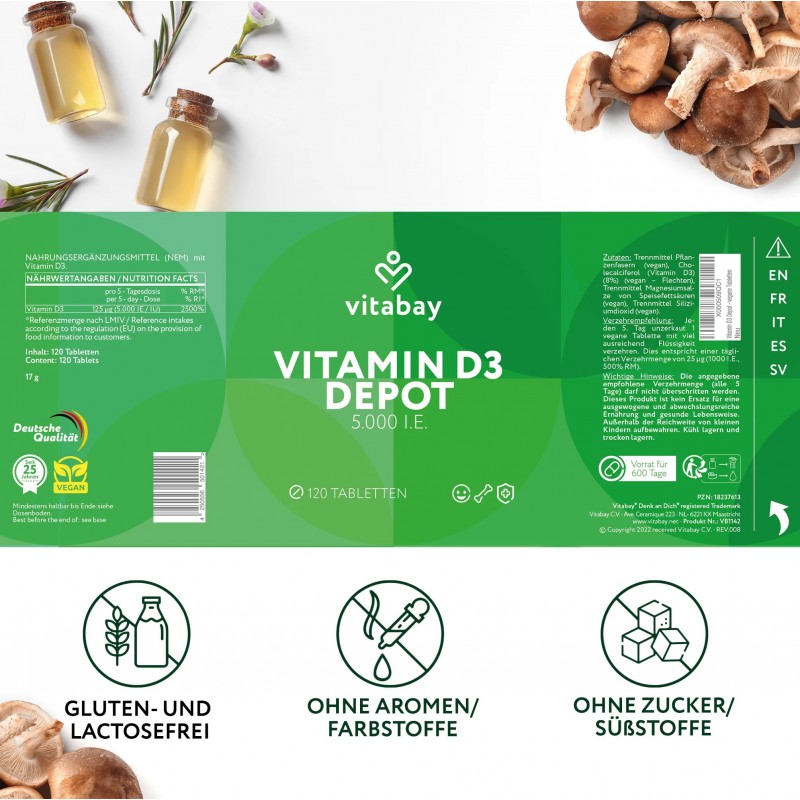 Vitamina D3 beneficii: • Vitamina D3 este cruciala pentru sanatatea oaselor • Vitamina D3 reduce rahitismul si osteomalacia • Vitamina D3 amelioreaza osteoporoza si fracturile • Vitamina D3 poate îmbunatati performantele fizice • Vitamina D3 îmbunatateste functiile cognitive • Vitamina D3 este benefica pentru dezvoltarea si functionarea creierului • Vitamina D3 reduce depresia • Vitamina D3 este benefica în scleroza multipla • Vitamina D3 îmbunatateste calitatea somnului • Vitamina D3 reduce riscul bolilor cardiovasculare Vitamina D, cunoscuta si sub numele de vitamina soarelui, este o vitamina esentiala în liposolubile. Se poate obtine fie prin alimentele din dieta, fie prin alimente si suplimente alimentare, fie sintetizat în piele la expunerea la lumina soarelui. Vitamina D3 este în mod obisnuit, obtinuta din dieta sau produsa de piele de la energia ultravioleta a soarelui. Cu toate acestea Vitamina D3 nu este abundenta în produsele alimentare, insa se poate obtine Vitamina D3 natural la pret accesibil pentru persoanele care au nevoie de aceata vitamina. Pe masura ce mai multi oameni evita expunerea la soare, suplimentarea cu Vitamina D-3 devine si mai necesara pentru a va asigura ca organismul dumneavoastra primeste o cantitate adecvata. Desi este clasificata ca o vitamina, trebuie considerata prohormona deoarece este implicata în numeroase procese metabolice din organism. Vitamina D 3 joaca un rol important în balanta calciului si a fosforului, importanta în sanatatea oaselor si activitatea nervoasa si musculara. De asemenea, regleaza tensiunea arteriala, functia imuna, productia celulara si secretia de insulina. Vitamina D beneficii dovedite stiintific Este important de observat ca multe dintre studiile privind vitamina D sunt studii de asociere, ceea ce înseamna ca deficienta este corelata cu o anumita problema, dar nu provoaca neaparat aceasta problema. Cu toate acestea, în multe dintre aceste cazuri, motivul pentru care sanatatea oamenilor este mai rau este ca ei nu primesc suficiente soare decât sa fie deficitare în vitamina D. Soarele are multe beneficii pentru sanatate care sunt independente de vitamina D. Atât de scazut poate fi vitamina D adesea mai mult ca un semnal ca cineva nu primeste suficienta soare, care este cauza reala a problemei de sanatate. Vitamina D Vegană naturală din Licheni cu 50.000 UI pe comprimat Vitamina D3 este printre cele mai bune și cele mai cunoscute substanțe nutritive cercetate. Importanța sa pentru sănătatea organismului nostru, începând cu sistemul imunitar, asupra funcției osoase și musculare până la starea de sanatate a inimii noastre, a fost dovedit în detaliu în toate studiile. De peste zece ani, aceasta vitamina atrage de asemenea atenția: După ani amănunțiti și lungi de cercetare, putem oferi clienților noștri o doză mare și astăzi v. a. Furnizați vitamina biodisponibilă și total-vegană de Vitamina D3: Într-un singur comprimat, 50.000 UI din această vitamină sănătoasă sunt grupate. Vitamina D3 de 50000 UI are un efect pronunțat de depunere. Vitamina D3 este una dintre vitaminele solubile în grăsimi și poate fi astfel stocată în țesutul gras. Avantajul de vitamine foarte concentrat comprimate noastre D3 este că va fi furnizat după ingestie sa pentru o lungă perioadă de timp cu aceasta vitamina esentiala - chiar si in lipsit de soare. Vitamina D3 este supusa procedurilor de control ridicate, în conformitate cu standardul ISO 13485, oferind astfel clienților noștri cu un certificat și asigura producția controlată. Astfel, toate procesele de fabricație - de la primirea prin producție la livrarea către client - sunt observate, înregistrate și verificate în detaliu. Esența sursei noastre de vitamina D3 este biodisponibilitatea ridicată, care ne permite să producem o vitamină D3 care este eficientă pentru nevoile dumneavoastră. În plus, vitamina D3 din sursa vegetală 100% (licheni) este tratată într-un proces natural, biochimic. Prospect Vitamina D3 Mod administrare: La fiecare 5 zile, înghițiți 1 comprimat întreg VEGAN cu multă apă sau suc. Aceasta corespunde unui consum zilnic de 25 μg (1000 IU, 500% DZR). Compozitie: 1 tableta contine 5.000 UI de Vitamina D3 (Colecalciferol), 2.500% DZR. Portii: 120 portii. Acest produs nu este un medicament. Informații nutriționale Doza zilnica Procentul cantității de referință în conformitate cu LMIV * Vitamin D3 125 mcg (5.000 IE / IU) 2.500% * Regulamentul informații din domeniul alimentar Ingrediente: Cholecalciferol (vitamina D3) (28%) (vegană - licheni), agent de eliberare fibre vegetale (vegan), agent de eliberare cornflour (vegan), agent de eliberare dextrin (vegan), agent de eliberare săruri de magneziu ale acizilor grași (vegan) . ATENTIE: Nu luati acest produs daca sunteti insarcinata sau alaptati. A nu se lasa la indemana copiilor. Nu utilizati daca sigiliul este rupt. A se pastra intr-un loc racoros si uscat. Nu folositi un supliment alimentar ca inlocuitor al unei alimentatii variate si echilibrate! Acest supliment alimentar nu este destinat sa diagnosticheze, sa trateze, sa vindece sau sa previna vreo boala.