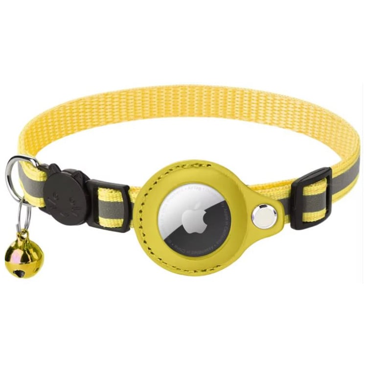 Zgarda animale pentru Airtag, Reflectorizanta, Clopotel, Textil, Galben Engros