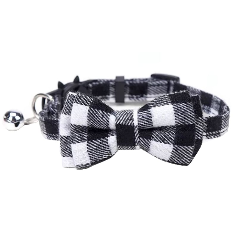 Zgarda Papion si Clopotel, pentru Animale mici, Marime S, Ajustabila, Textil, Alb si Negru Engros