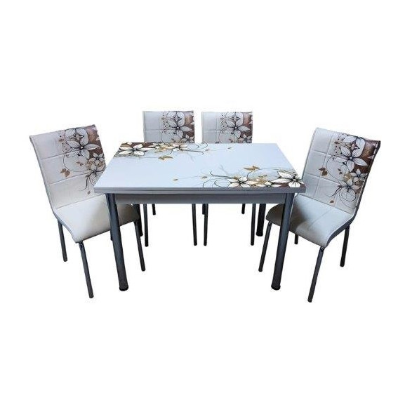 Set Masa Extensibila cu 4 scaune Cristal, Crem, 110/170 x 70 cm