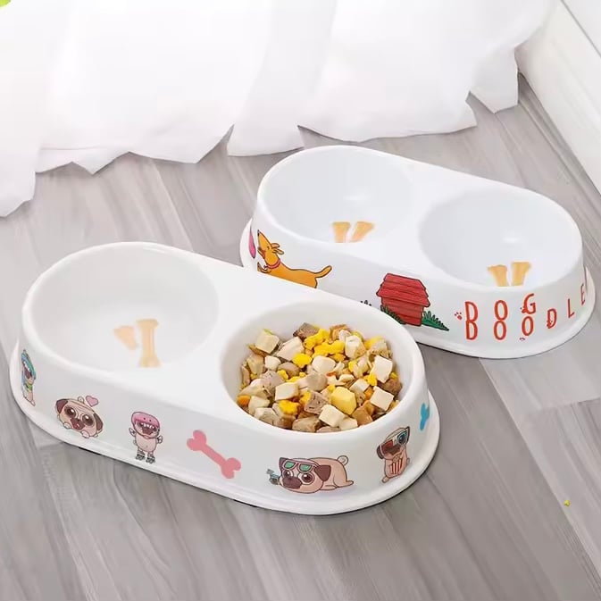 Bol pentru hrana animale dublu EN-GROSS- castron mâncare căței/pisici, plastic