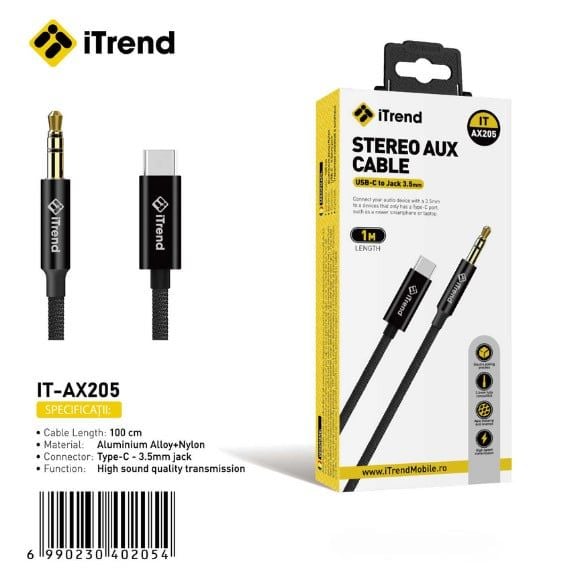 Rezultate Căutare: CABLU AUXILIAR TIP C - JACK 3.5 ITREND AX 205 1 METRU