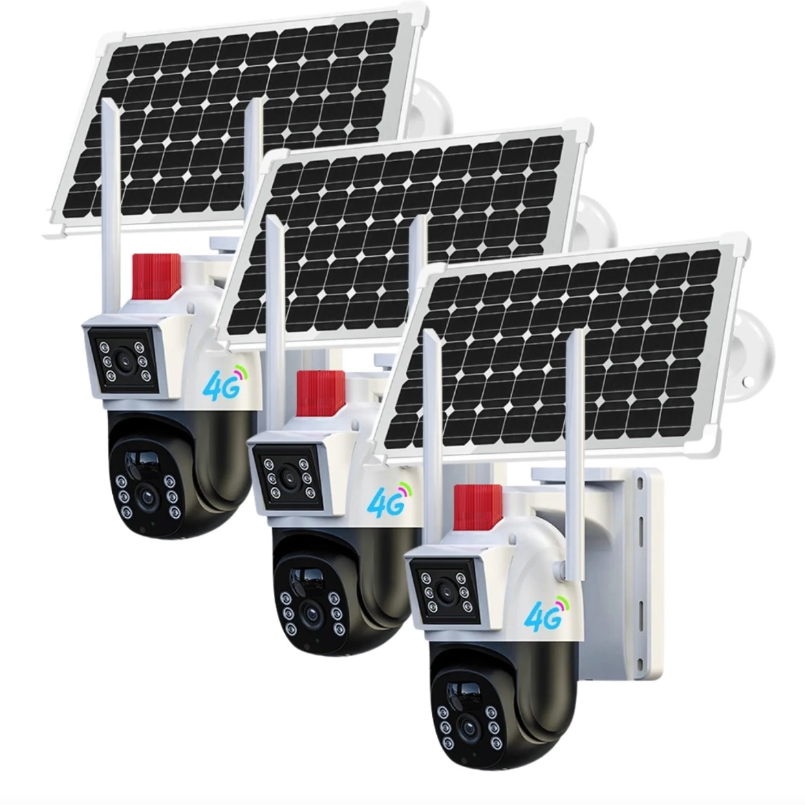 PACHET 3 X Camera de Supraveghere cu Panou Solar slot SIM 4G V380Pro 6MP
