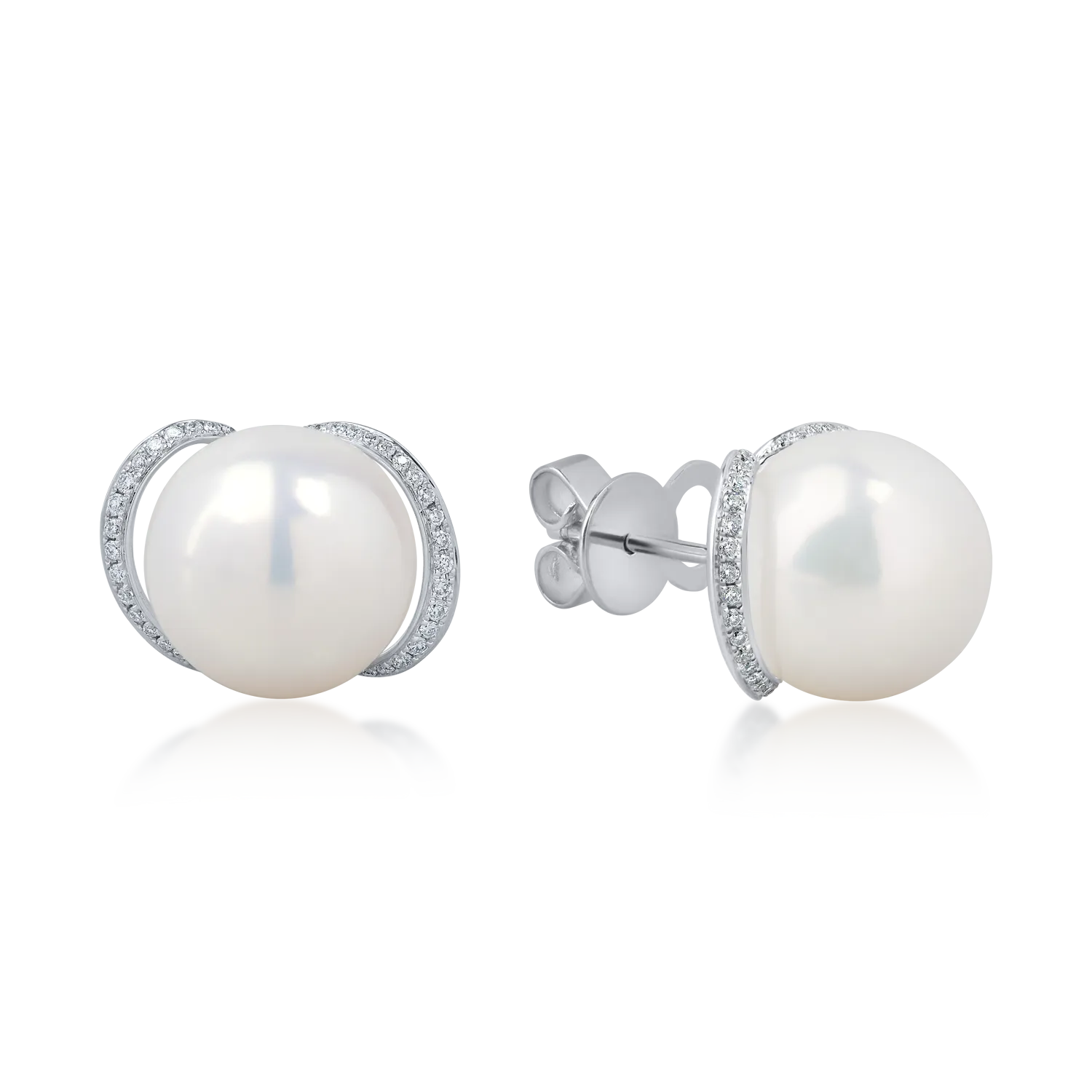 Cercei din aur alb cu perle de cultura de 7.6ct si diamante de 0.3ct