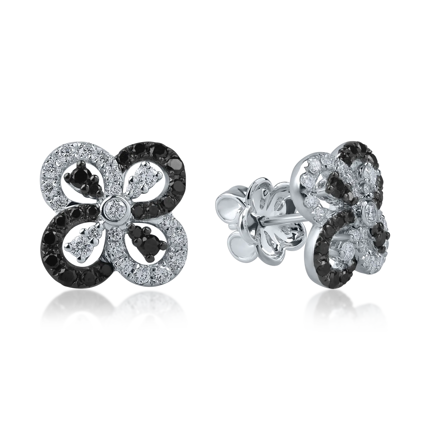 Cercei geometrici din aur alb cu diamante negre de 0.4ct si diamante incolore de 0.4ct