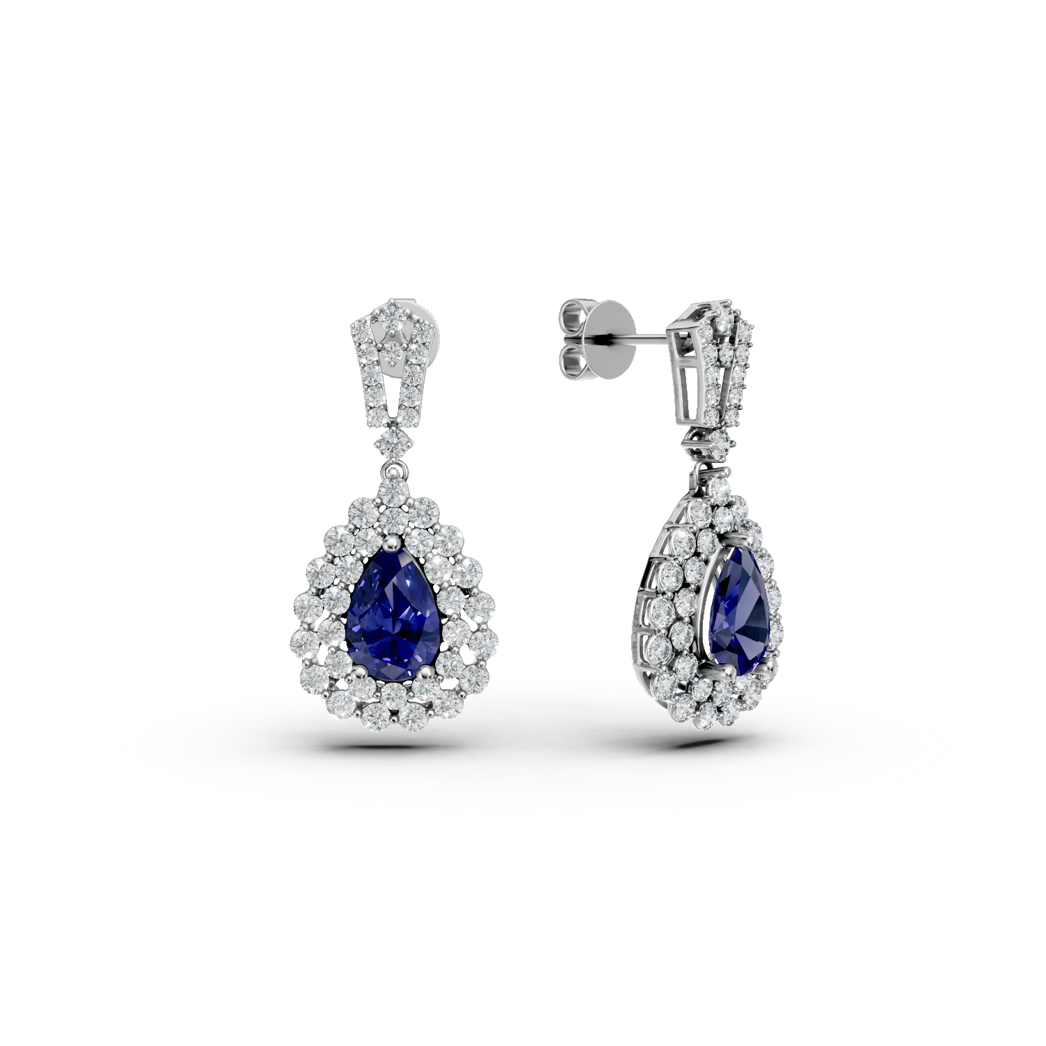 Cercei lacrima din aur alb cu safire ovale de 2.04ct si diamante round de 1.3ct