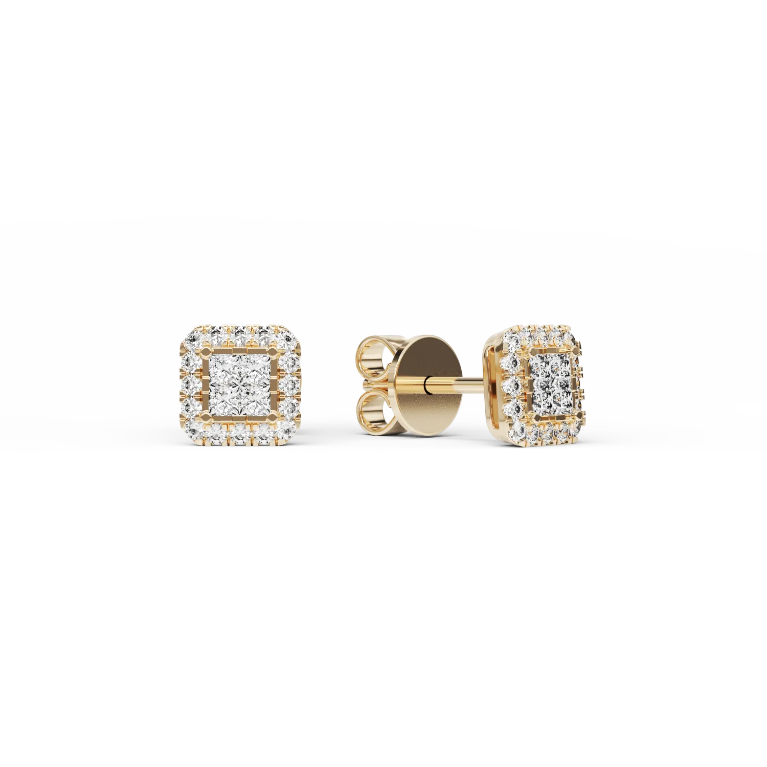 Cercei geometrici din aur galben cu diamante de 0.37ct