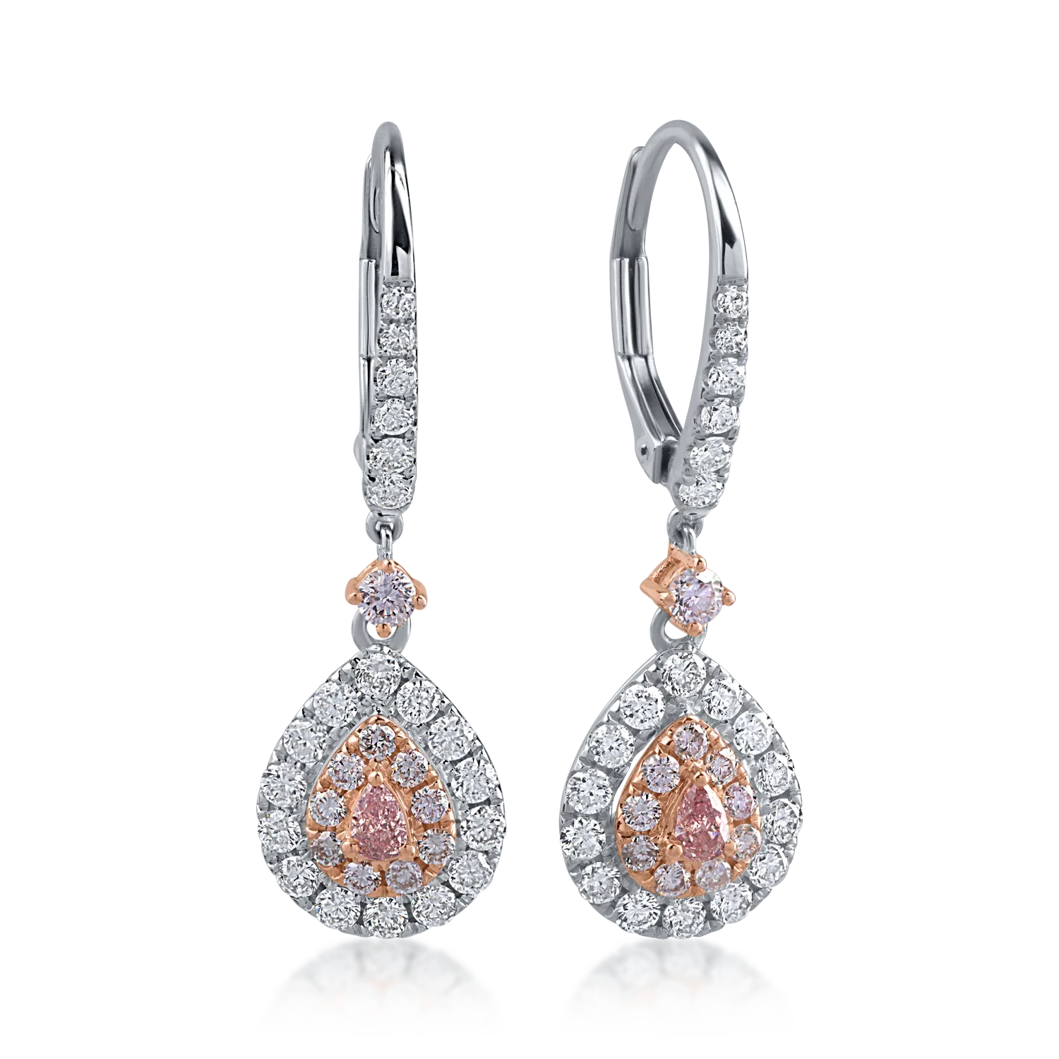 Cercei din aur alb-roz cu diamante transparente de 0.66ct si diamante roz de 0.41ct