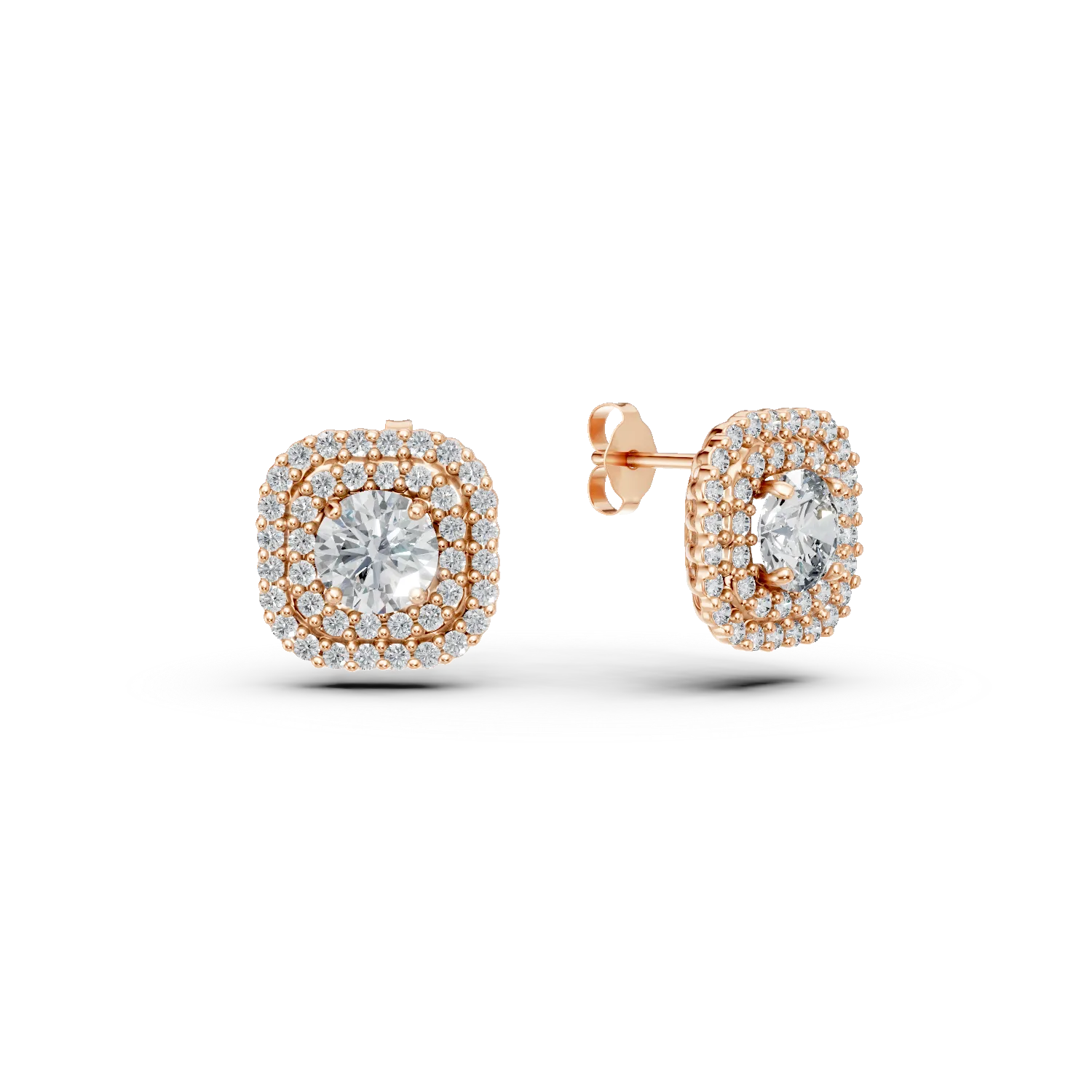 Cercei geometrici din aur roz cu zirconii