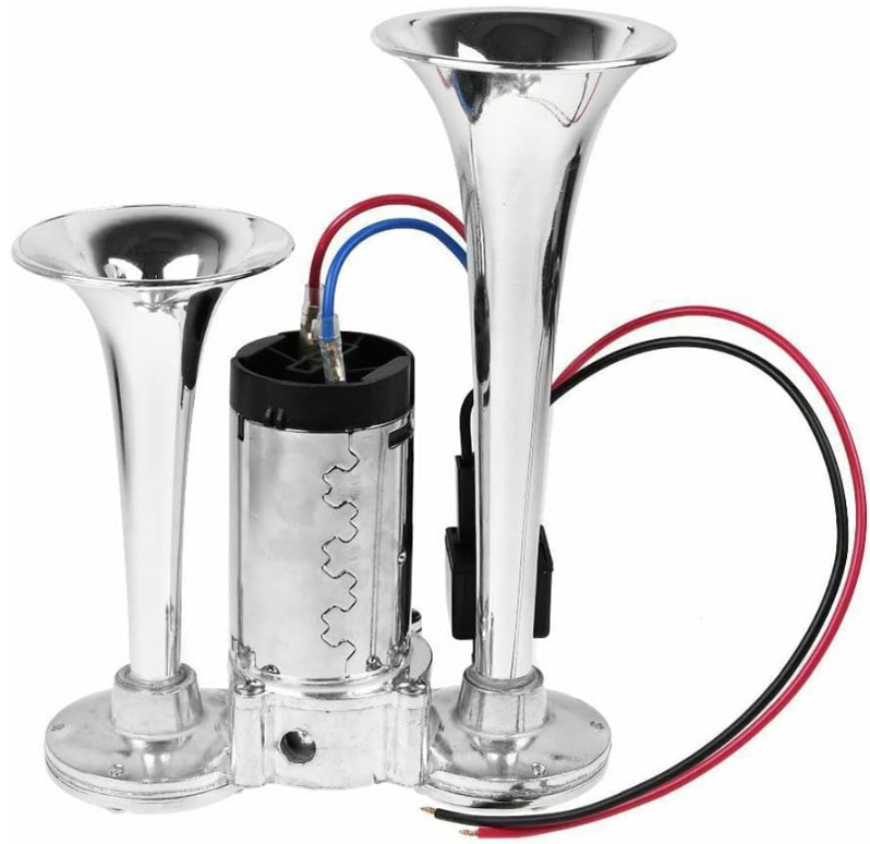 Claxon 2 goarne 12V cu compresor, sunet clar si un suflu puternic