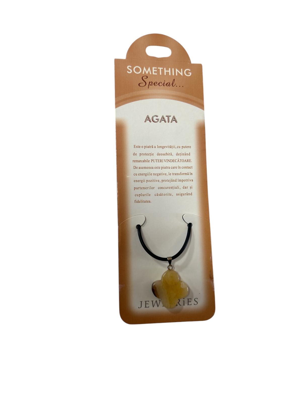 Colier din piatra semipretioasa in forma de trifoi AGATA pe carton