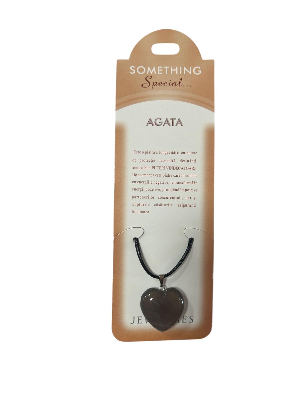 Colier din piatra semipretioasa in forma de inima AGATA pe carton