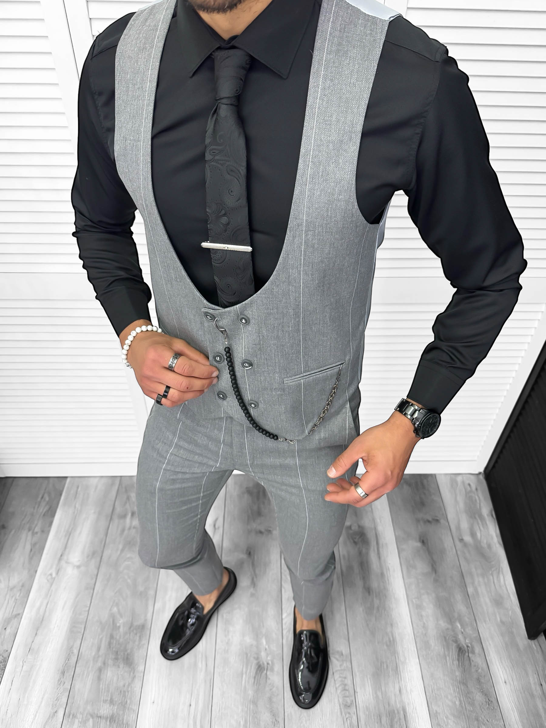 Compleu barbati Vesta + Pantaloni Lant si cravata cadou B4148 7-4.2