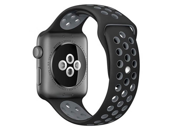 Curea Sport perforata pentru Apple Watch, Silicon, Negru-Gri - 44/45/46/49 mm , Medie Engros