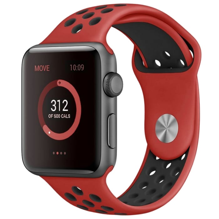 Curea Sport perforata pentru Apple Watch, Silicon, Rosu-Negru - 44/45/46/49 mm , Medie Engros