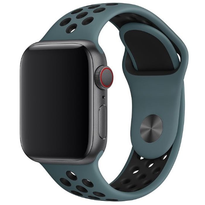 Curea Sport perforata pentru Apple Watch, Silicon, Negru-Verde - 44/45/46/49 mm , Medie Engros