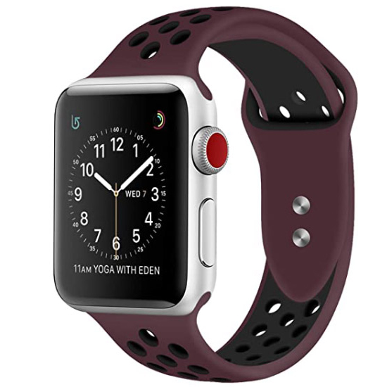 Curea Sport perforata pentru Apple Watch, Silicon, Visiniu/Negru - 44/45/46/49 mm , Medie Engros