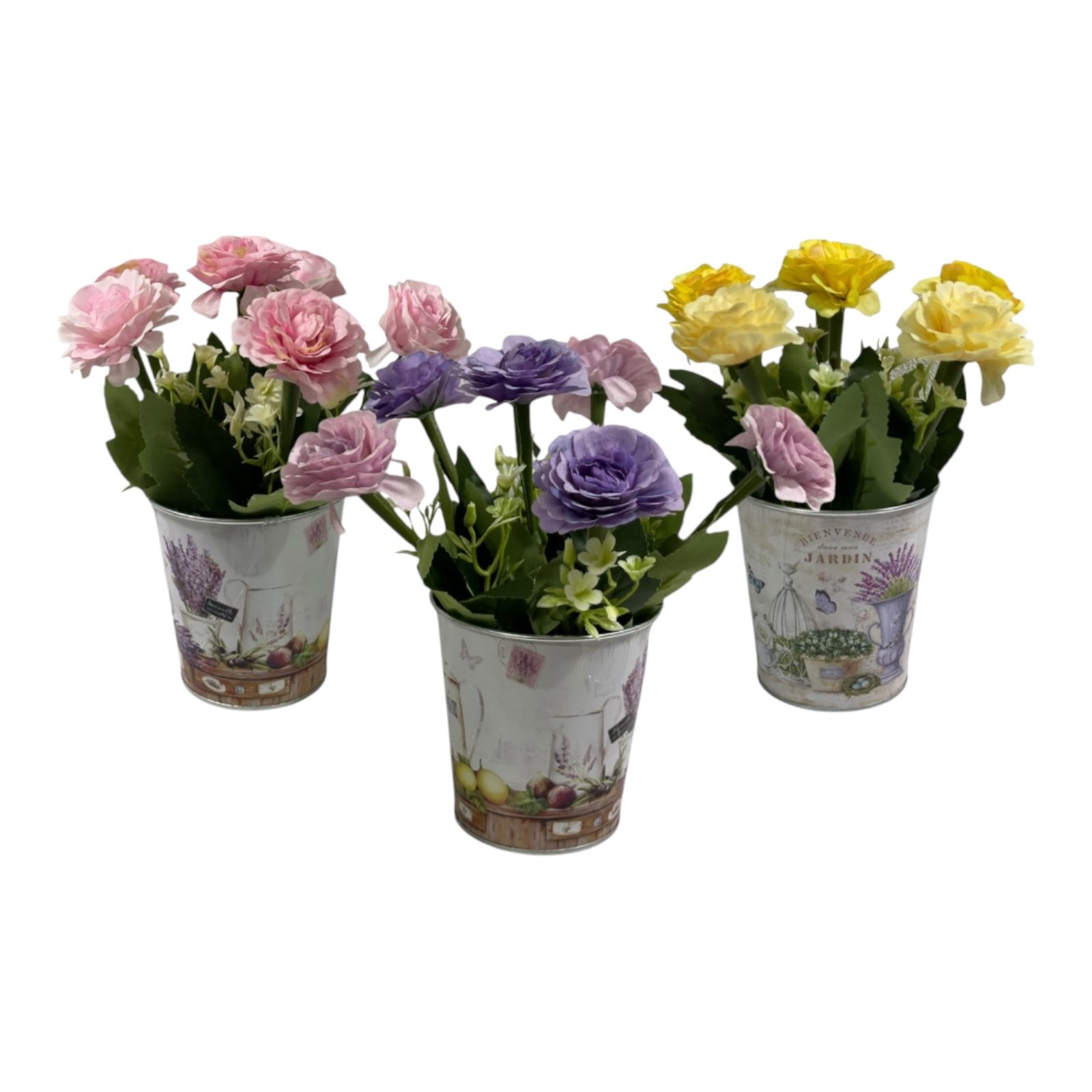 Ghiveci metalic decorativ engros Flori artificiale mix culori 20cm 751-2