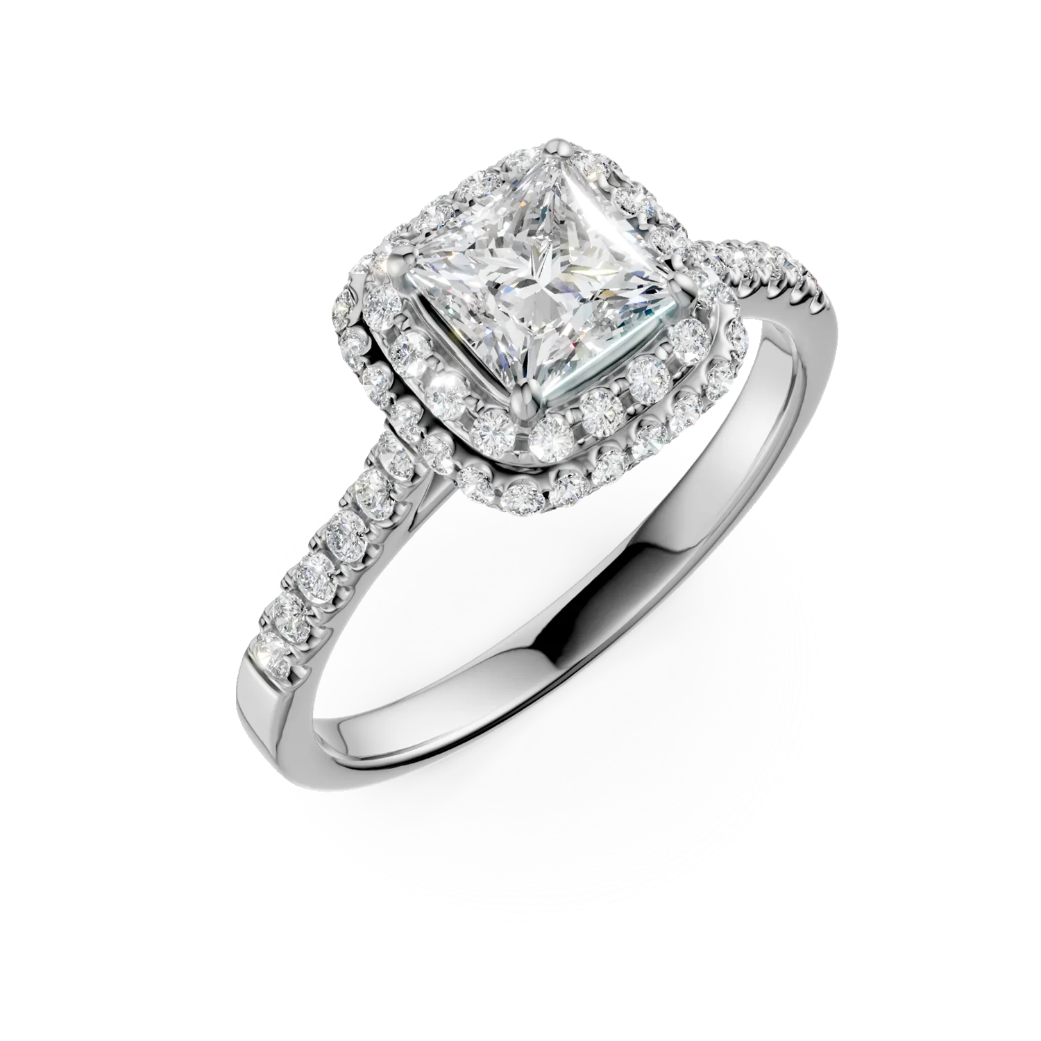 Inel de logodna din aur alb cu diamant de 1.01ct si diamante de 0.39ct