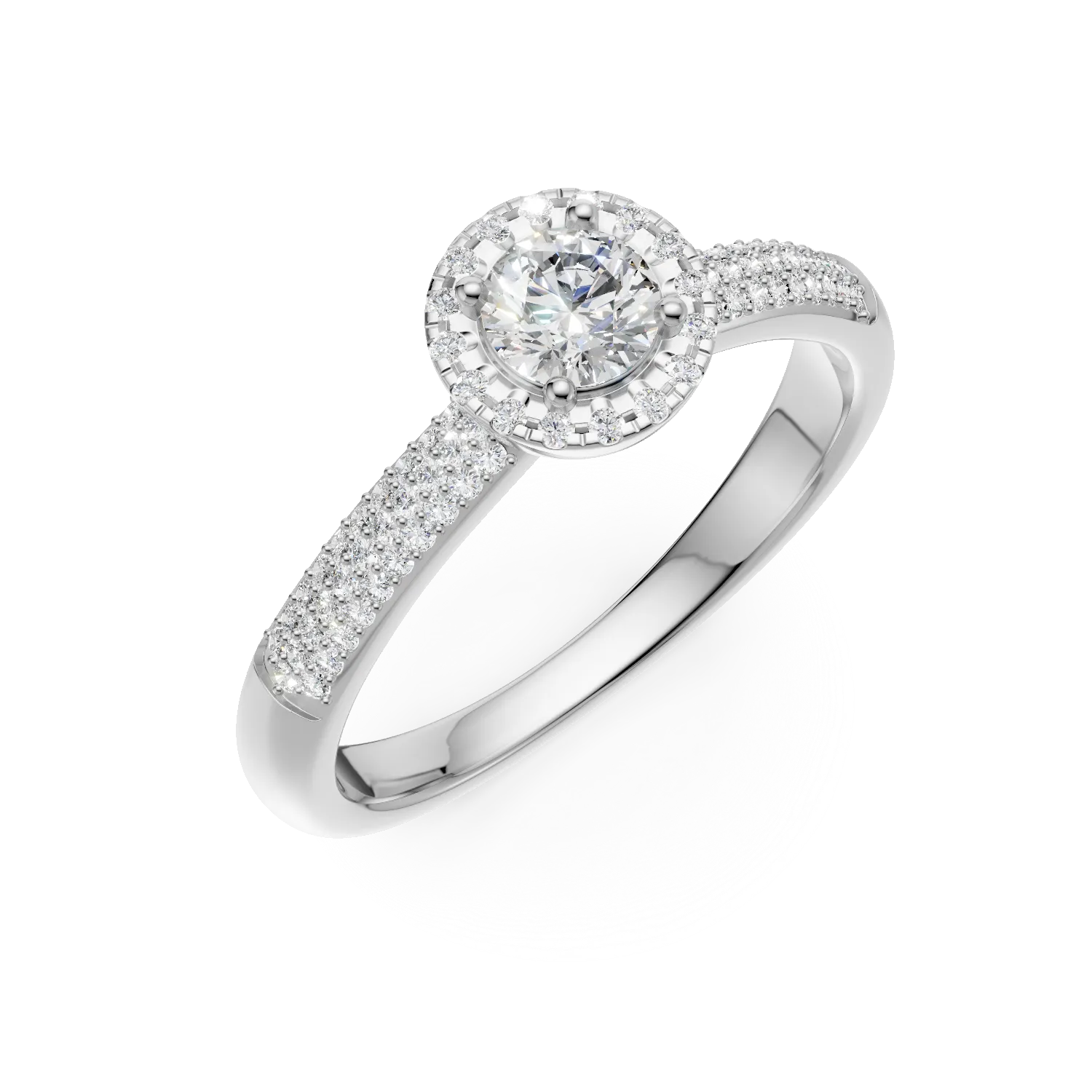 Inel de logodna din aur alb cu diamant de 0.33ct si diamante de 0.36ct