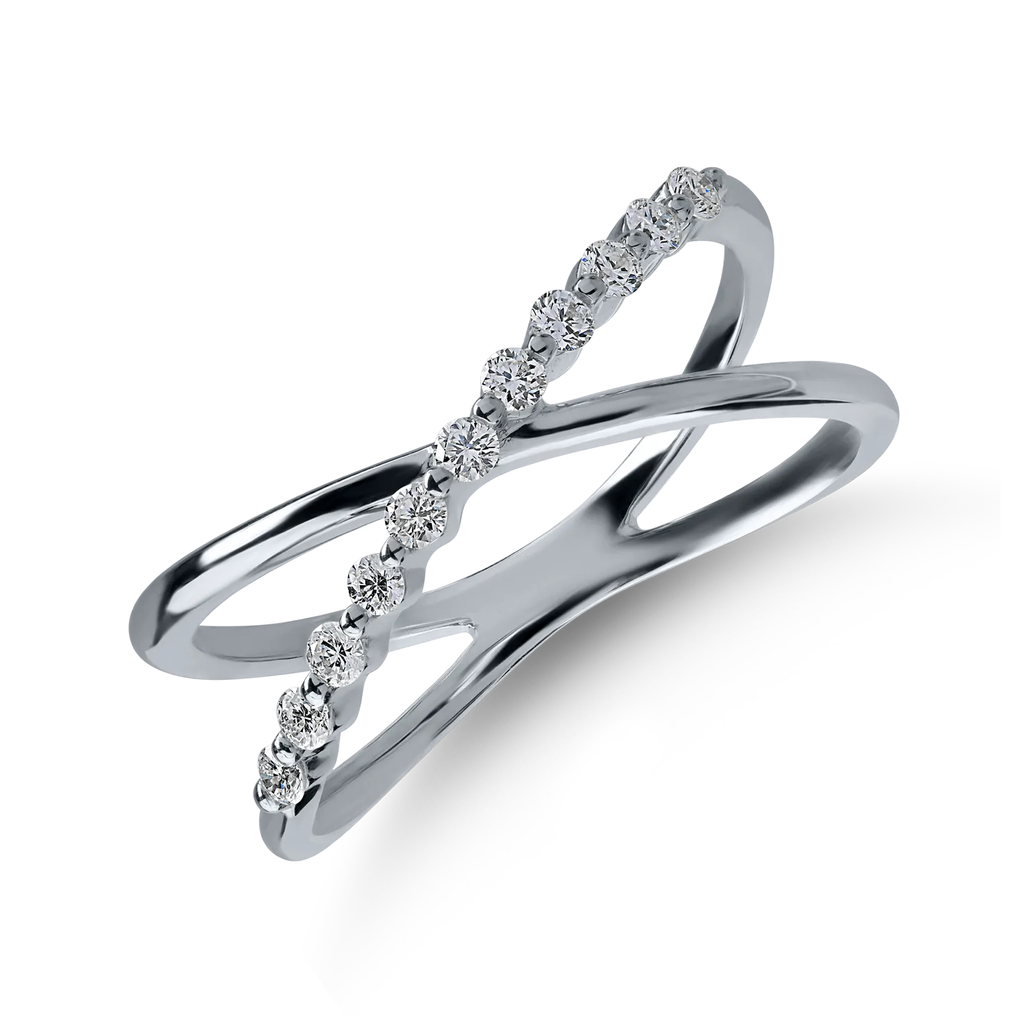 Inel geometric din aur alb cu diamante de 0.1ct