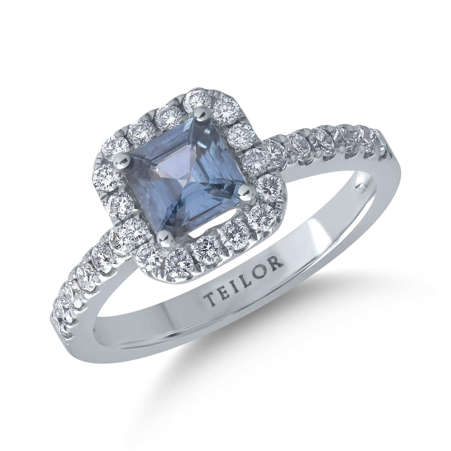 Inel din aur alb cu safir cushion de 0.7ct si diamante de 0.41ct