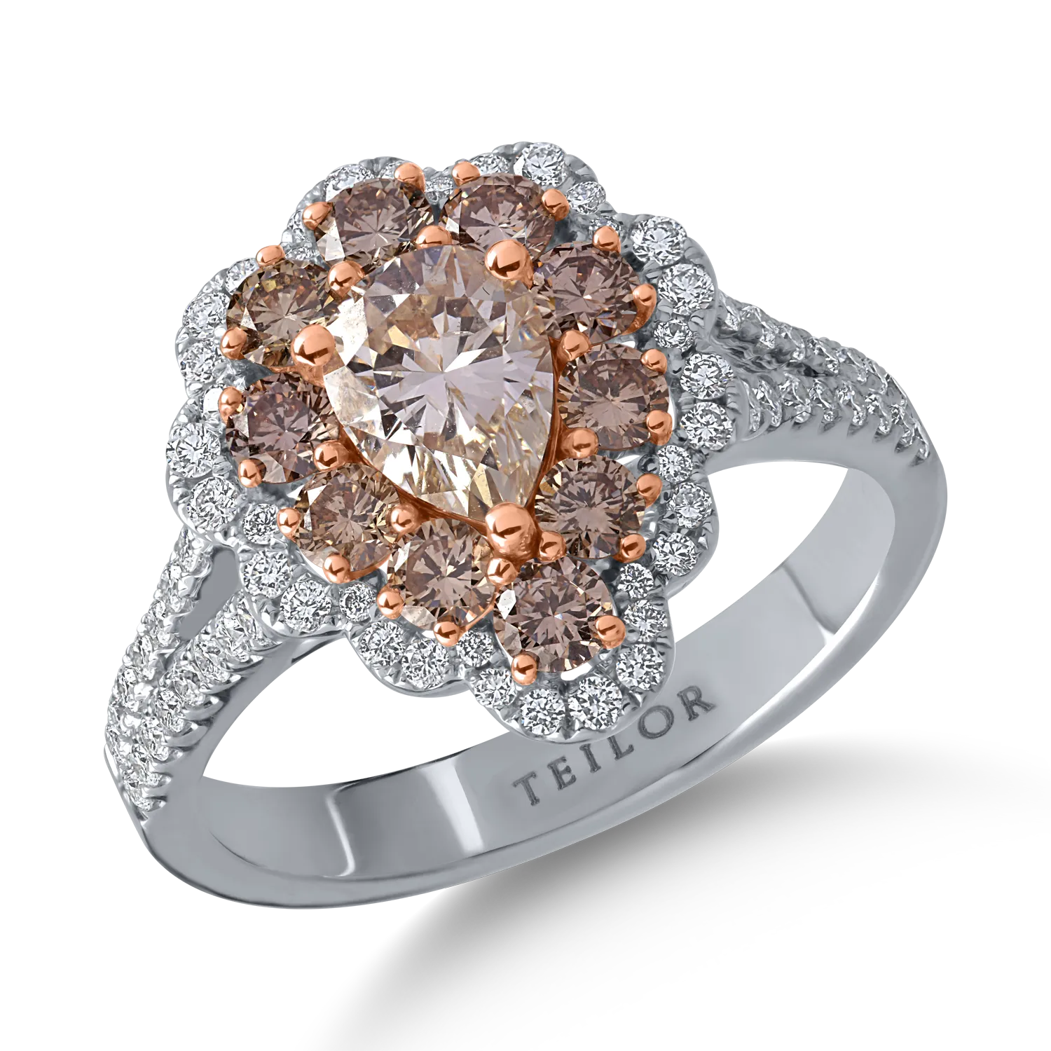 Inel din aur alb-roz cu diamante maro de 1.72ct si diamante transparente de 0.41ct
