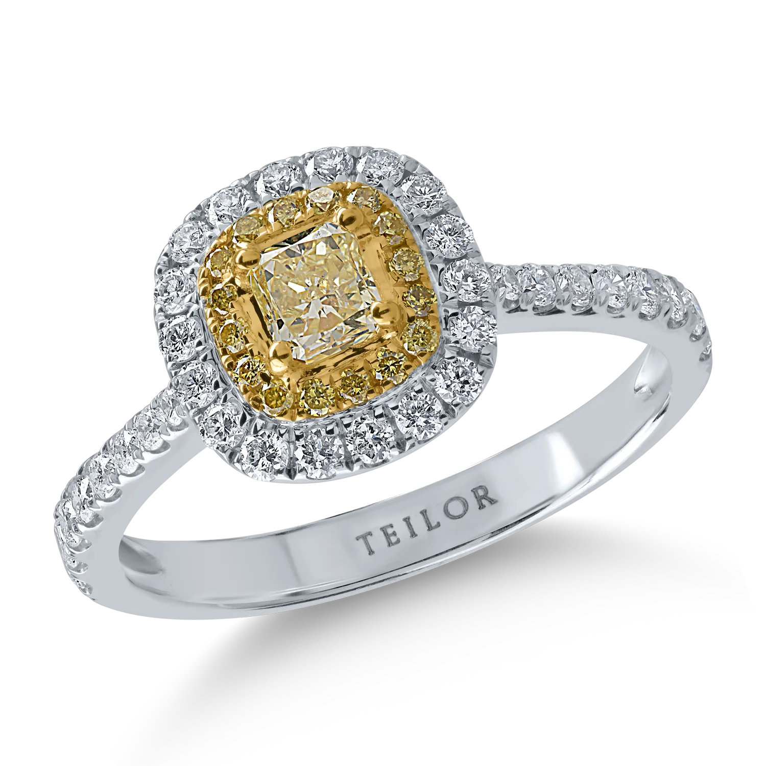 Inel din aur alb-galben cu diamante galbene 0.41ct si diamante transparente de 0.46ct