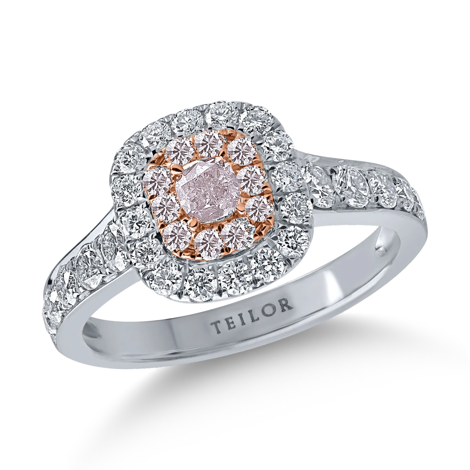 Inel din aur alb-roz cu diamante roz de 0.33ct si diamante incolore de 0.84ct