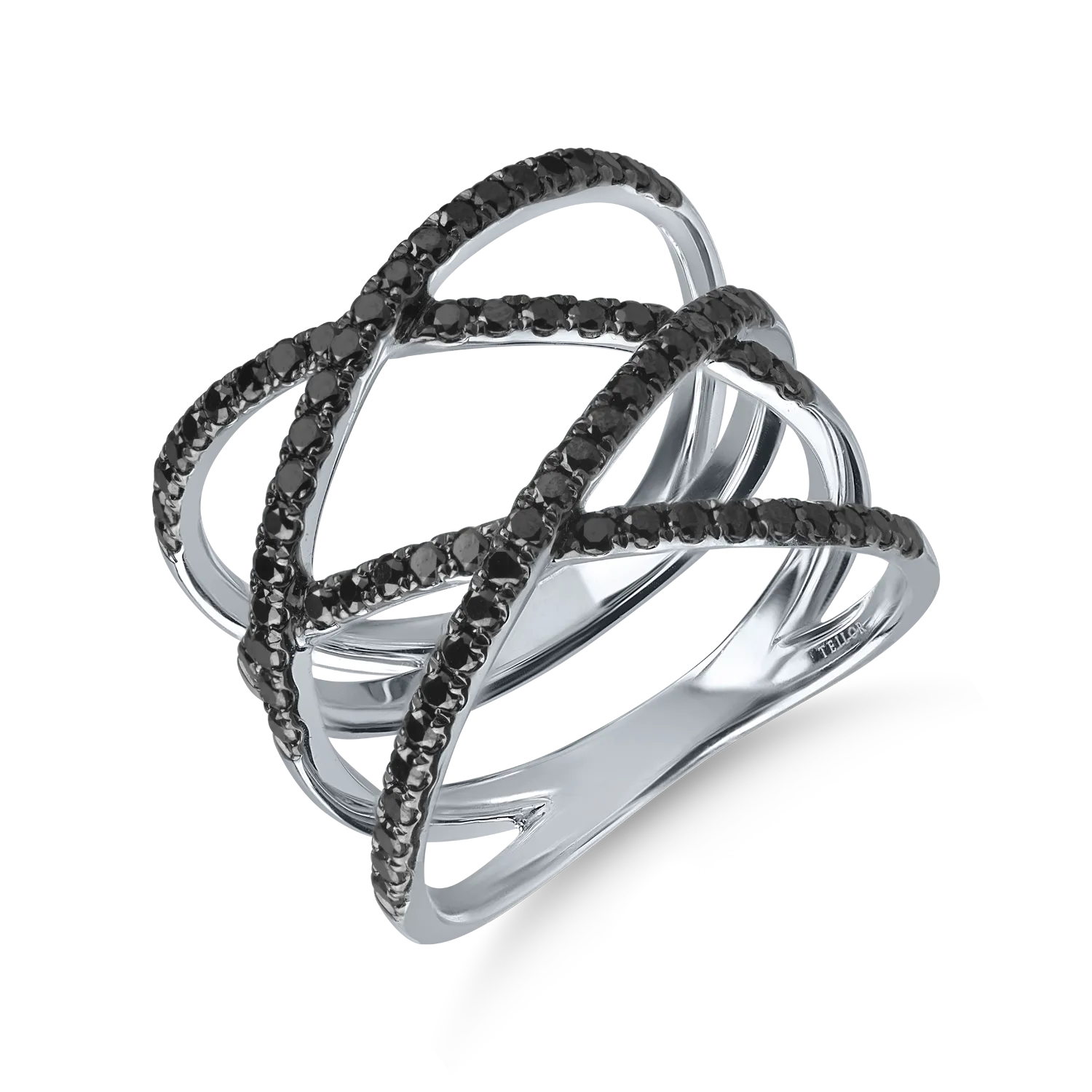 Inel geometric din aur alb cu diamante negre microsetting de 0.7ct