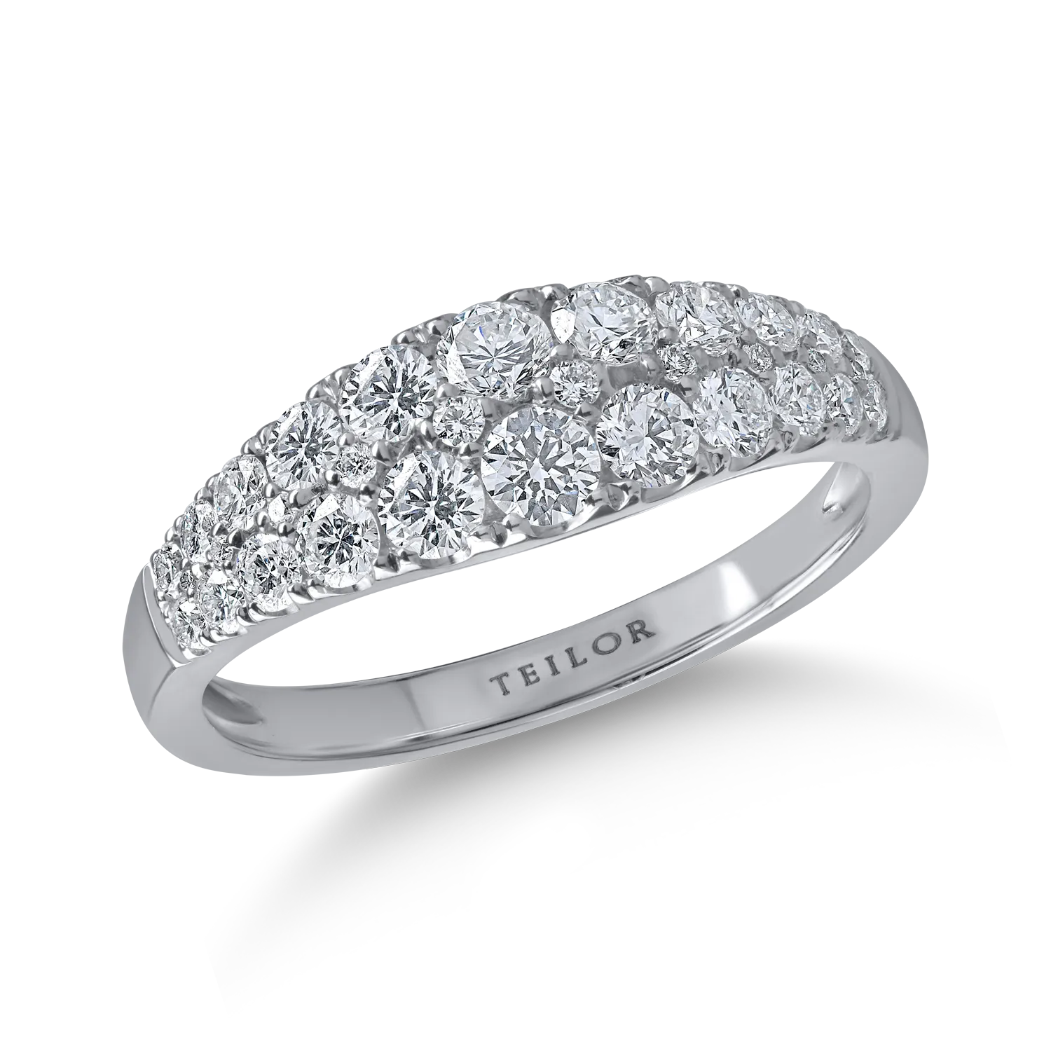 Inel geometric din aur alb cu diamante microsetting de 0.7ct