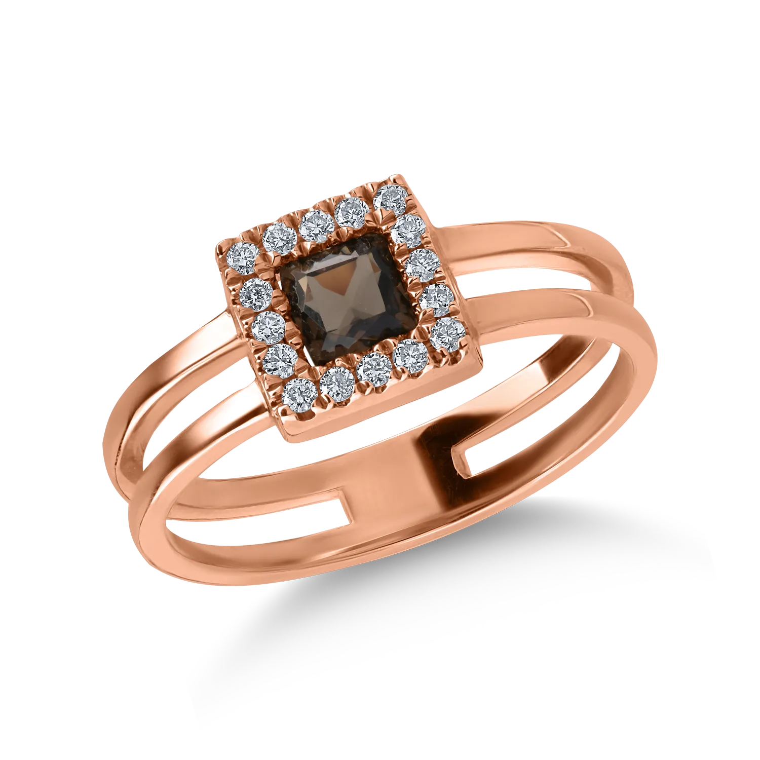 Inel din aur roz cu quartz fumuriu de 0.29ct si diamante de 0.11ct