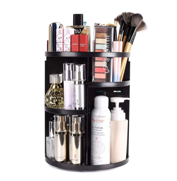 Rezultate Căutare: Organizator Rotativ Cosmetice 360°, negru, spațiu reglabil, suport machiaj și parfumuri, Engros
